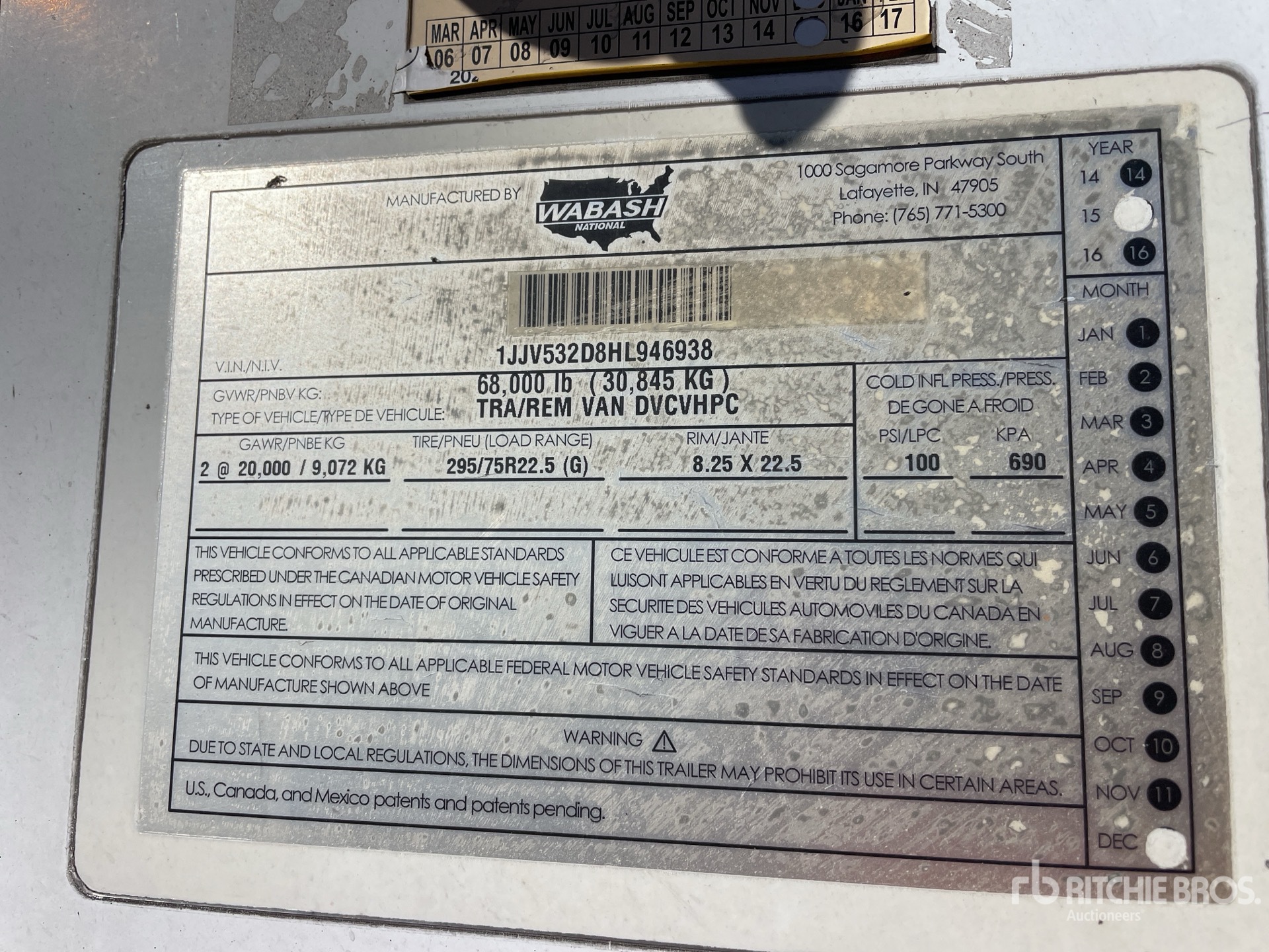 Air Ride Sliding Suspension, Hardwood Floor, Swing Door, 295/75R22.5 Tires 68000 lb GVWR