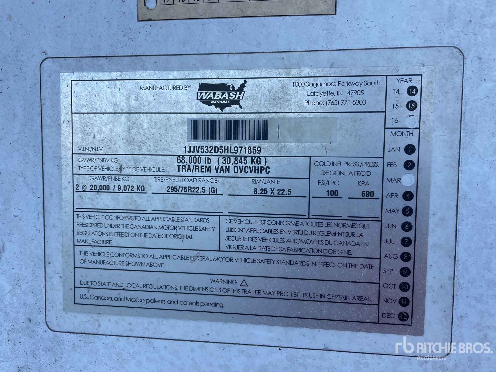 Air Ride Sliding Suspension, Hardwood Floor, Swing Door, 295/75R22.5 Tires 68000 lb GVWR