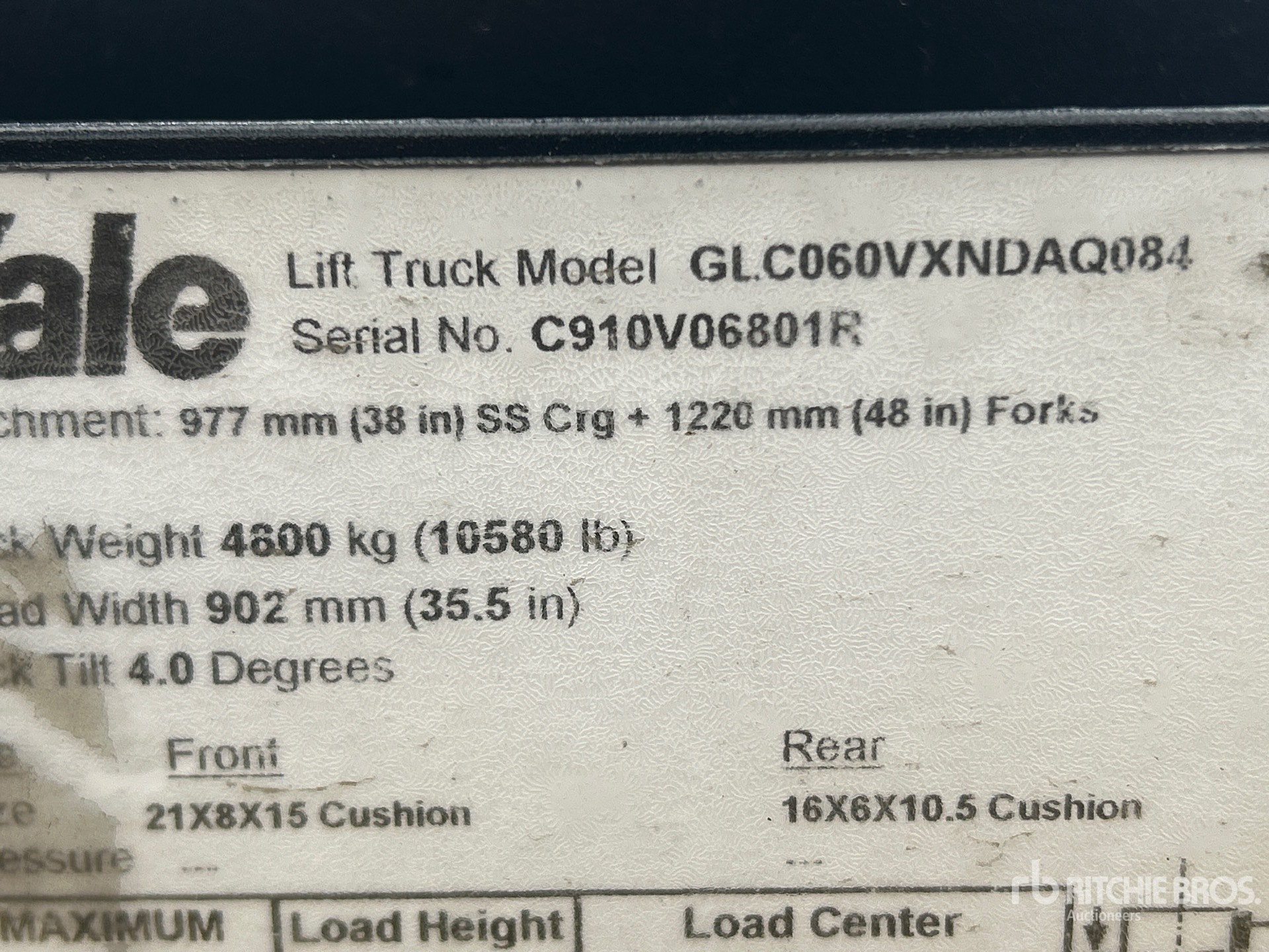 Le descrizioni dettagliate degli articoli non sono complete, Ritchie Bros. Auctioneers non ha effettuato alcuna ispezione delle componenti dell'articolo, salvo quelle espressamente indicate di seguito. Salvo espressamente indicato, non verrà fornita alcuna dichiarazione o garanzia, espressa o implicita, riguardante il funzionamento dell'articolo e delle sue componenti, incluso descrizioni o garanzie relative a funzionamento, conformità o osservanza di standard o requisiti di sicurezza eventualmente previsti da organi di vigilanza o competenti, dichiarazioni di idoneità o commerciabilità. Si raccomanda di prendere personalmente visione di ogni componente dell'articolo in modo accurato prima di fare un'offerta.