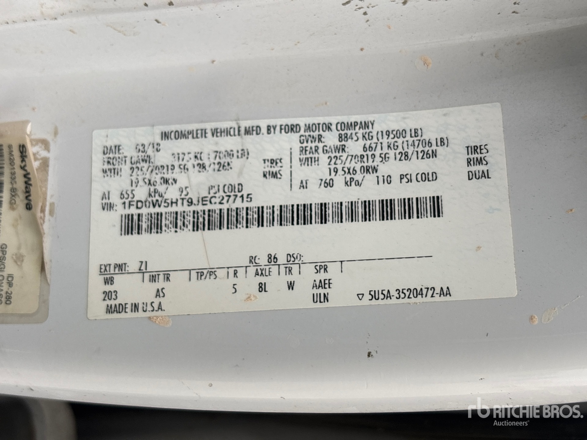 Le descrizioni dettagliate degli articoli non sono complete, Ritchie Bros. Auctioneers non ha effettuato alcuna ispezione delle componenti dell'articolo, salvo quelle espressamente indicate di seguito. Salvo espressamente indicato, non verrà fornita alcuna dichiarazione o garanzia, espressa o implicita, riguardante il funzionamento dell'articolo e delle sue componenti, incluso descrizioni o garanzie relative a funzionamento, conformità o osservanza di standard o requisiti di sicurezza eventualmente previsti da organi di vigilanza o competenti, dichiarazioni di idoneità o commerciabilità. Si raccomanda di prendere personalmente visione di ogni componente dell'articolo in modo accurato prima di fare un'offerta.