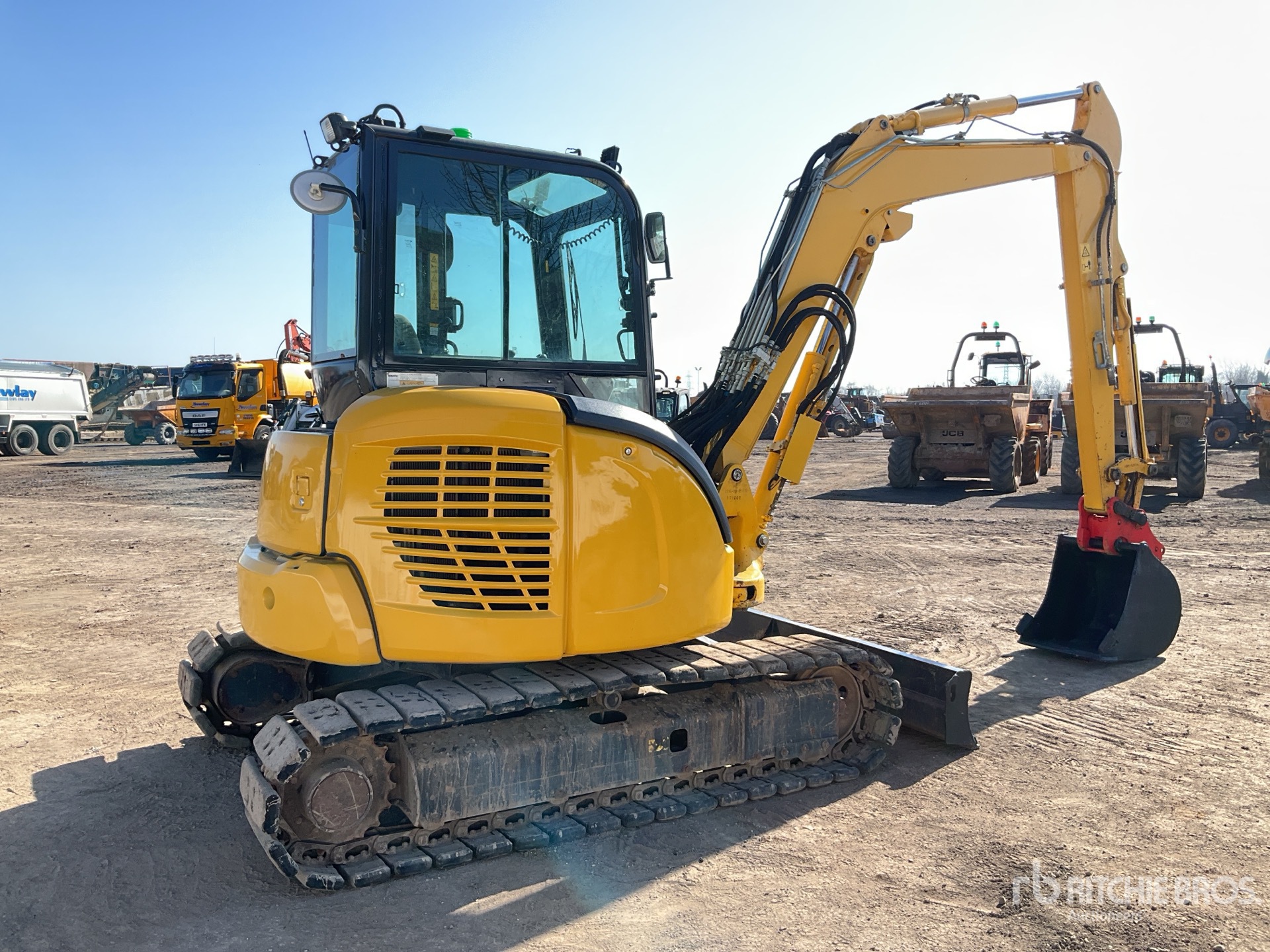 Enclosed Cab, Swing Boom, 2000 mm Stick, Auxiliary Hydraulic Plumbing, Stick Check Valve, Boom Check Valves, Backfill Blade, 400 mm Track Shoes w/Rubber Pads, Hydraulic Quick Coupler, 600 mm Digging Bucket