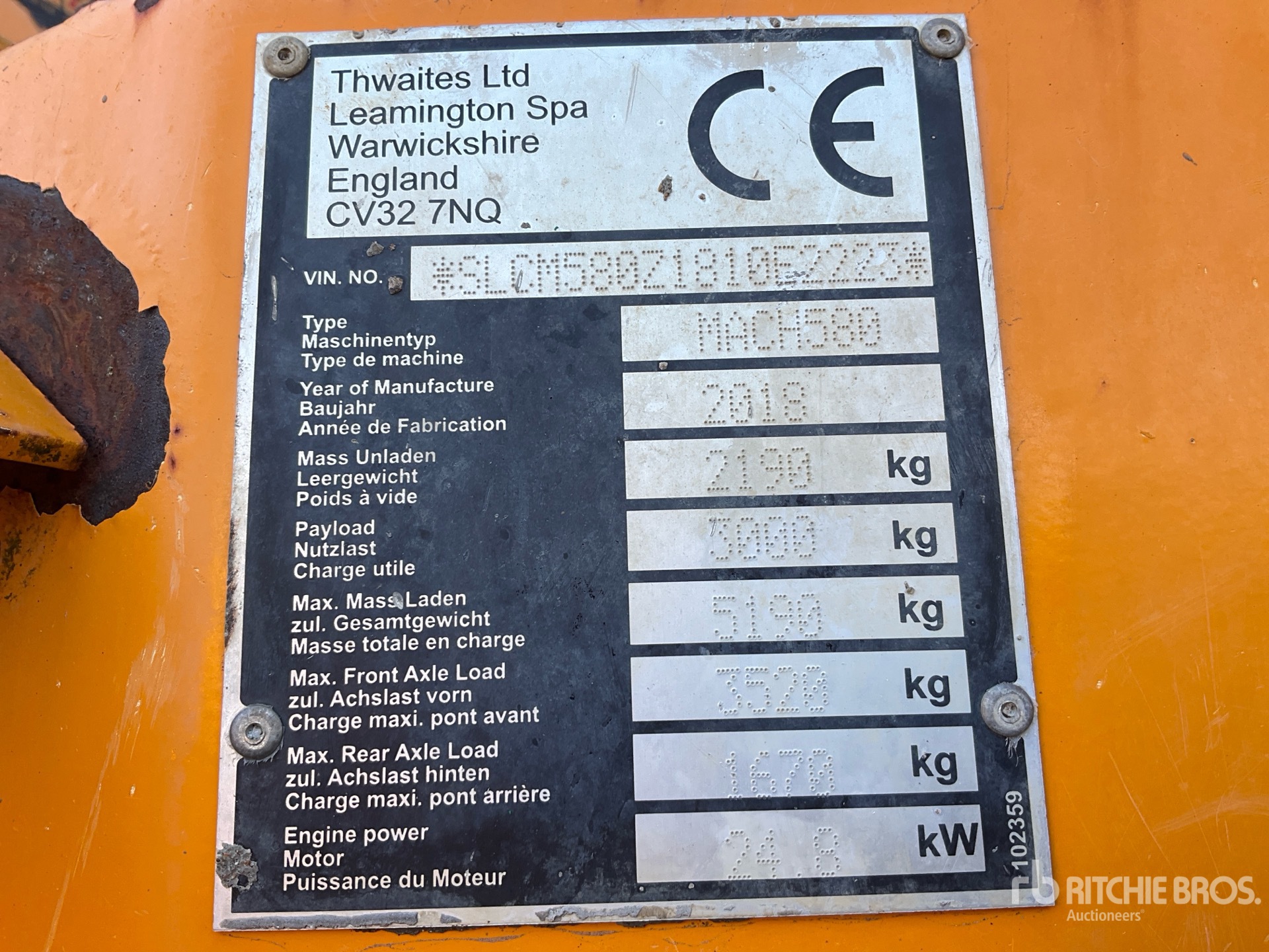 Le descrizioni dettagliate degli articoli non sono complete, Ritchie Bros. Auctioneers non ha effettuato alcuna ispezione delle componenti dell'articolo, salvo quelle espressamente indicate di seguito. Salvo espressamente indicato, non verrà fornita alcuna dichiarazione o garanzia, espressa o implicita, riguardante il funzionamento dell'articolo e delle sue componenti, incluso descrizioni o garanzie relative a funzionamento, conformità o osservanza di standard o requisiti di sicurezza eventualmente previsti da organi di vigilanza o competenti, dichiarazioni di idoneità o commerciabilità. Si raccomanda di prendere personalmente visione di ogni componente dell'articolo in modo accurato prima di fare un'offerta.