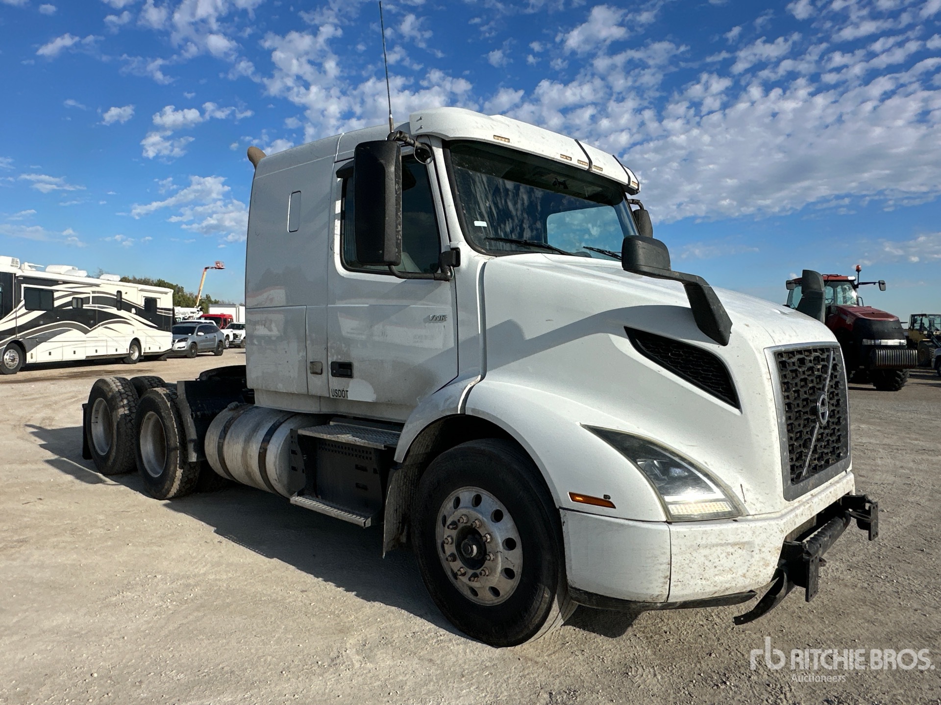 Located in Lane 38 Spot 1, Volvo D11M 425 hp Engine, 2017 US EPA Label, 19259 Engine hrs, Eaton Fuller FRO-15210C 10-Speed Manual Transmission, 13200 lb Front Axle, 40000 lb Rears, 53200 lb GVWR, Engine Brake, 42 in Flat Top Sleeper Cab, 180 in Wheelbase, Air Suspension, Aluminum Wheels, 11R22.5 Front Tires, 275/80R22.5 Rear Tires, Air Sliding 5th Wheel, Dual Fuel Tanks