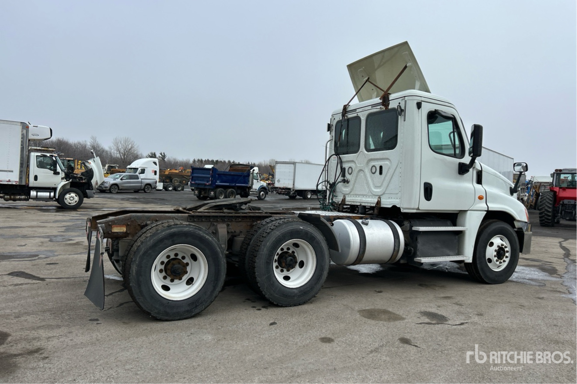 Detroit DD15 Engine, 2017 US EPA Label, 4393 Engine hrs, Eaton Fuller FO-16E313A MHP Ultrashift Automatic Transmission, 14600 lb Front Axle, 46000 lb Rears, 60600 lb GVWR, Engine Brake, Differential Lock, 180 in Wheelbase, Air Suspension, 315/80R22.5 Front Tires, 11R22.5 Rear Tires, Air Sliding 5th Wheel, Dual Fuel Tanks