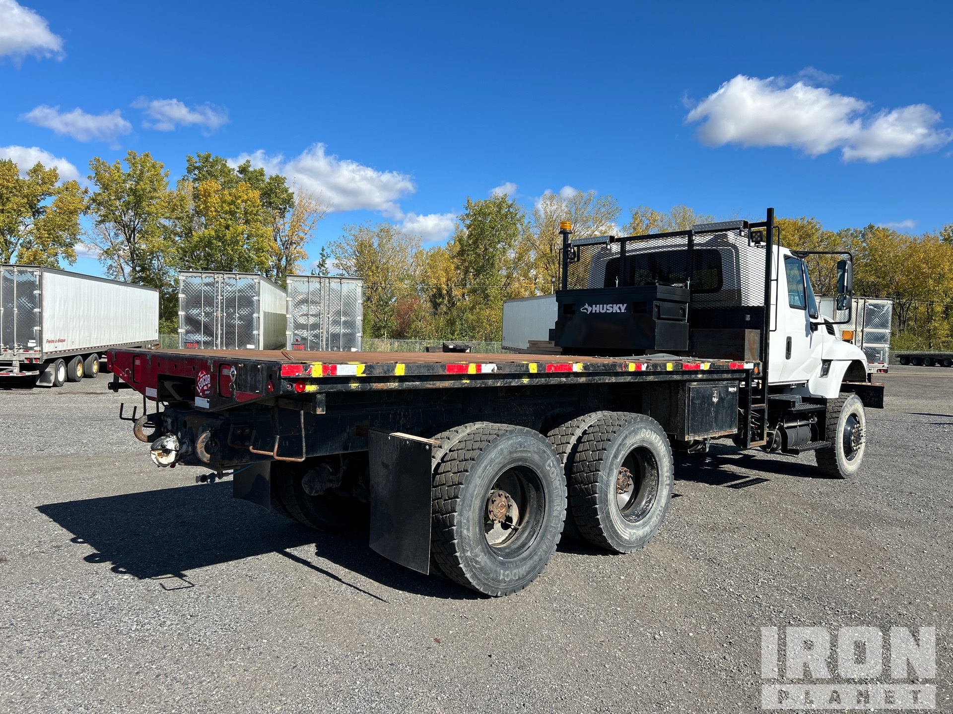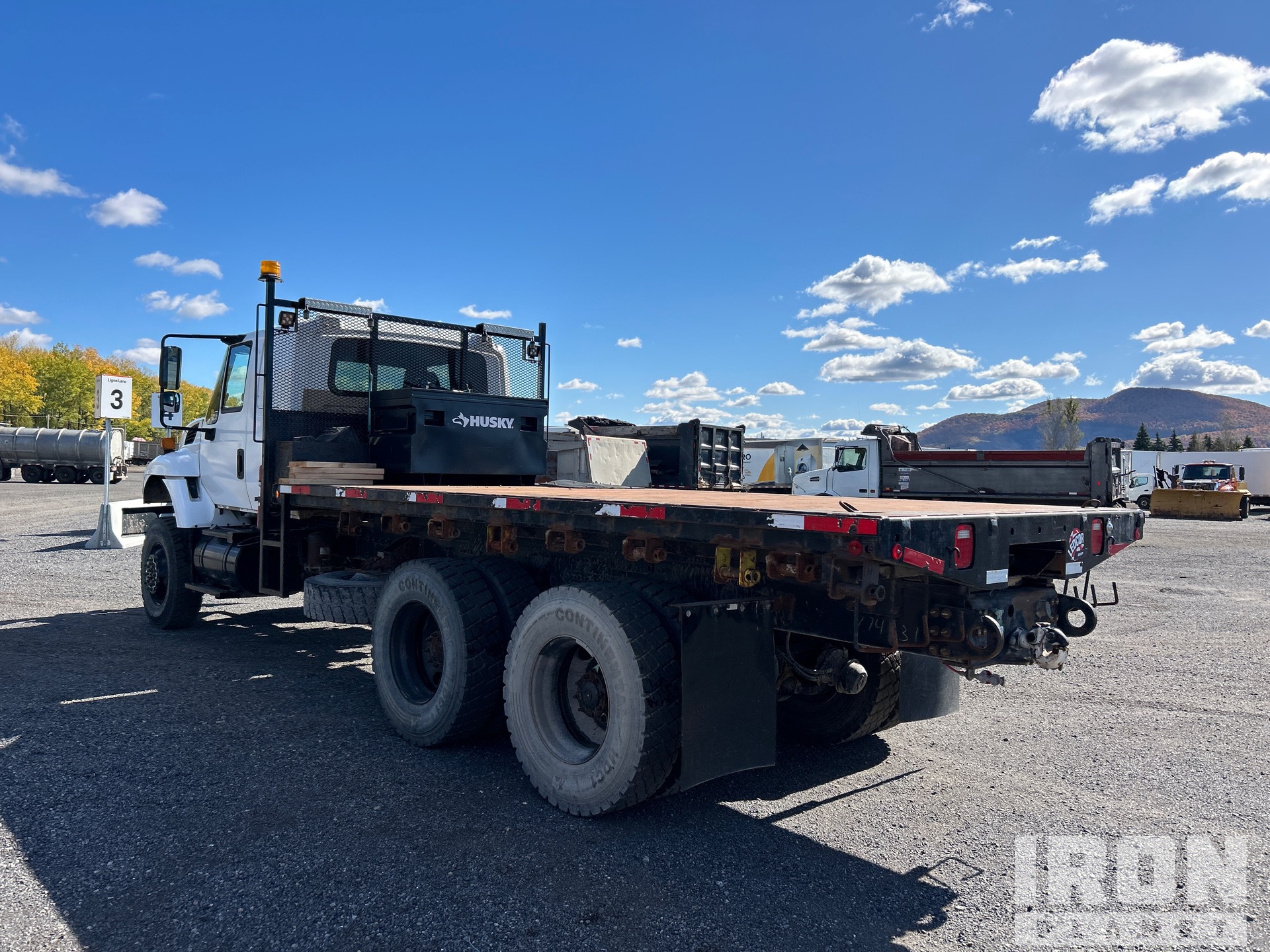 Located in Lane 4 Spot 2, International DT530 6 Cylinder 8.7 L Diesel 285 hp Engine, 2003 US EPA Label, 1937 Engine hrs, Exhaust Brake, Eaton Fuller 6-Speed Manual Transmission, Differential Lock, 14000 lb Front Axle, 40000 lb Rears, 54000 lb GVWR, Air Ride Cab, 12R22.5, Rubber Suspension, 215 in Wheelbase, 17 ft x 100 in Bed, Winch, Pintle Hitch