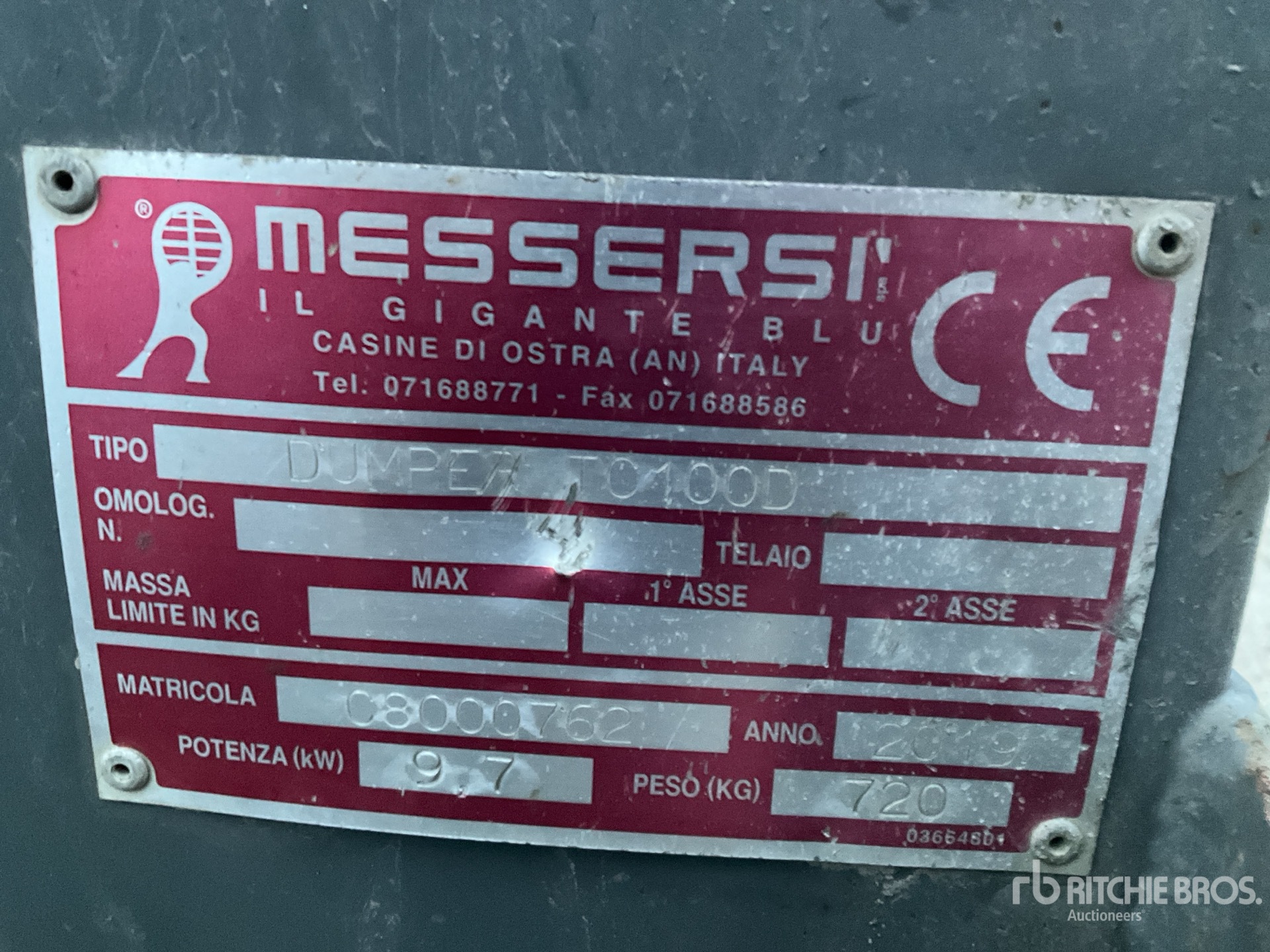 Le descrizioni dettagliate degli articoli non sono complete, Ritchie Bros. Auctioneers non ha effettuato alcuna ispezione delle componenti dell'articolo, salvo quelle espressamente indicate di seguito. Salvo espressamente indicato, non verrà fornita alcuna dichiarazione o garanzia, espressa o implicita, riguardante il funzionamento dell'articolo e delle sue componenti, incluso descrizioni o garanzie relative a funzionamento, conformità o osservanza di standard o requisiti di sicurezza eventualmente previsti da organi di vigilanza o competenti, dichiarazioni di idoneità o commerciabilità. Si raccomanda di prendere personalmente visione di ogni componente dell'articolo in modo accurato prima di fare un'offerta.