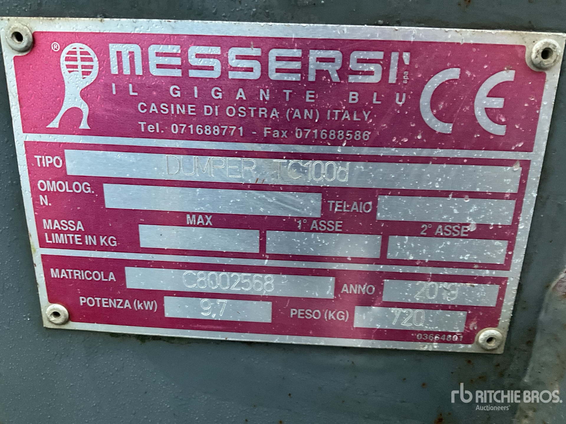Le descrizioni dettagliate degli articoli non sono complete, Ritchie Bros. Auctioneers non ha effettuato alcuna ispezione delle componenti dell'articolo, salvo quelle espressamente indicate di seguito. Salvo espressamente indicato, non verrà fornita alcuna dichiarazione o garanzia, espressa o implicita, riguardante il funzionamento dell'articolo e delle sue componenti, incluso descrizioni o garanzie relative a funzionamento, conformità o osservanza di standard o requisiti di sicurezza eventualmente previsti da organi di vigilanza o competenti, dichiarazioni di idoneità o commerciabilità. Si raccomanda di prendere personalmente visione di ogni componente dell'articolo in modo accurato prima di fare un'offerta.