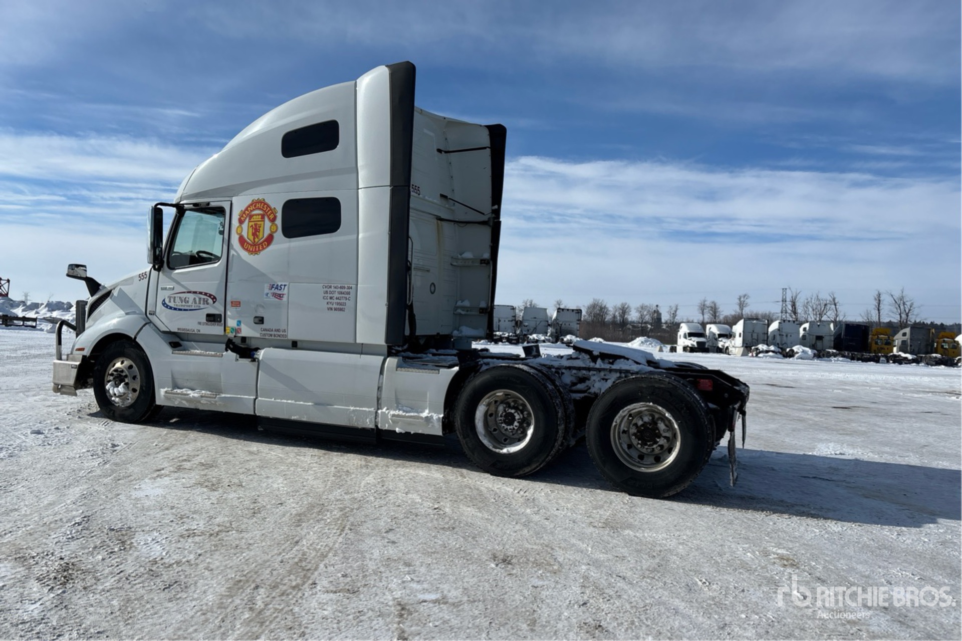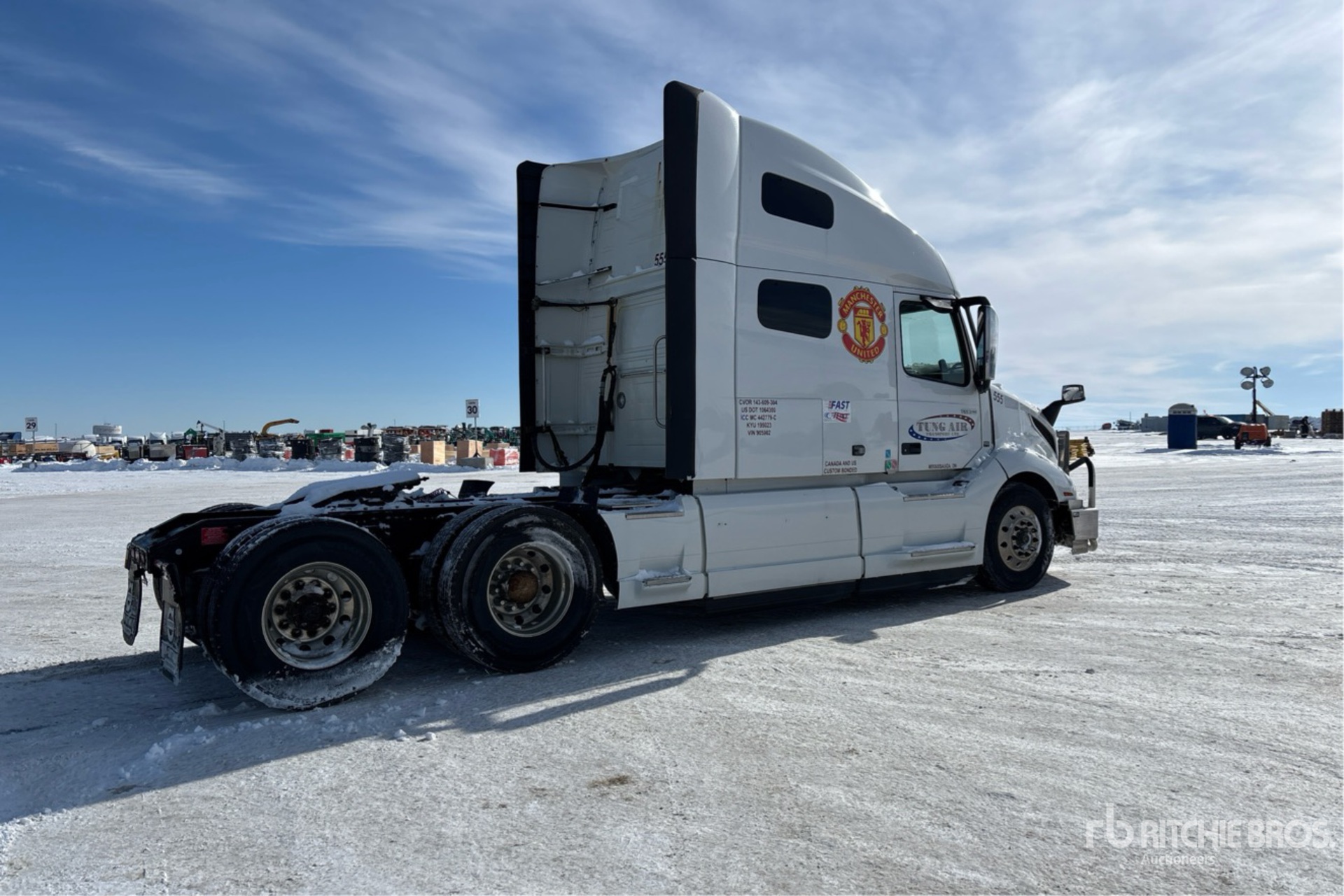 Volvo D13M 455 hp Engine, 2018 US EPA Label, 20094 Engine hrs, Volvo ATO2612F 12-Speed Automated Transmission, 12350 lb Front Axle, 40000 lb Rears, 52350 lb GVWR, Engine Brake, Differential Lock, 70 in High Rise Sleeper Cab, Bunk Beds, 219 in Wheelbase, Air Suspension, Aluminum Wheels, 11R22.5, Air Sliding 5th Wheel, Dual Fuel Tanks