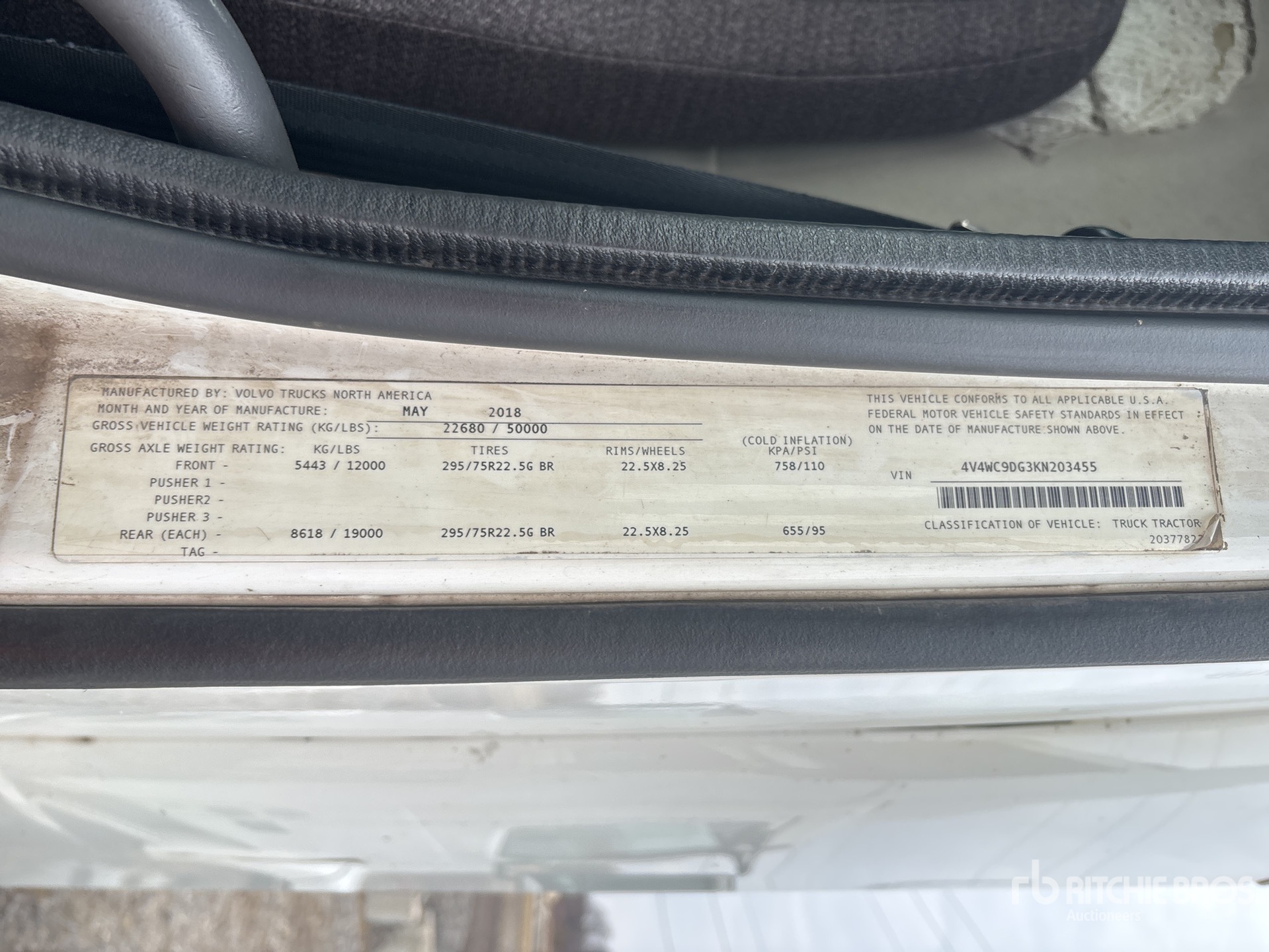 Volvo D11M-385 385 hp Engine, 2018 US EPA Label, 12000 lb Front Axle, 38000 lb Rears, 50000 lb GVWR, 175 in Wheelbase, Air Suspension, Aluminum Wheels, 275/80R22.5, Dual Fuel Tanks