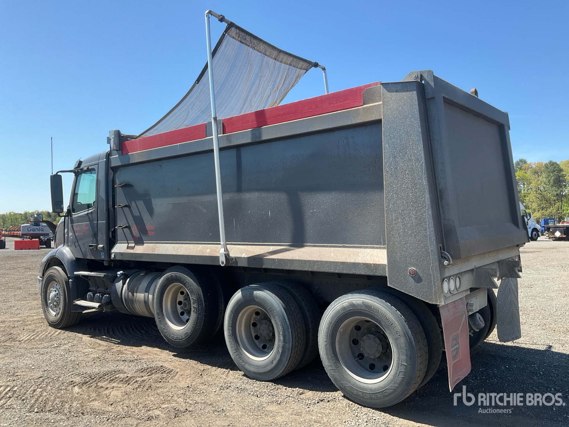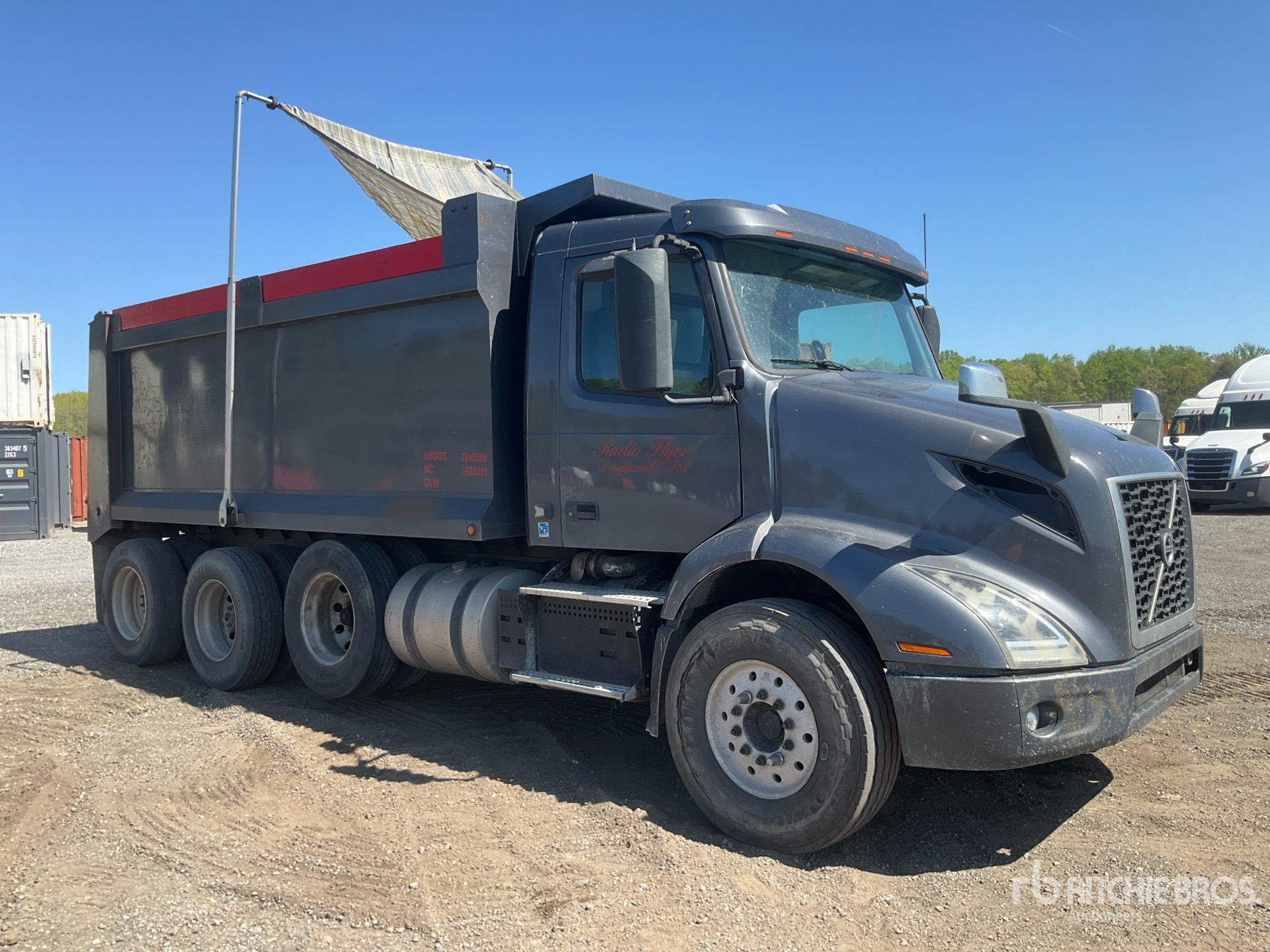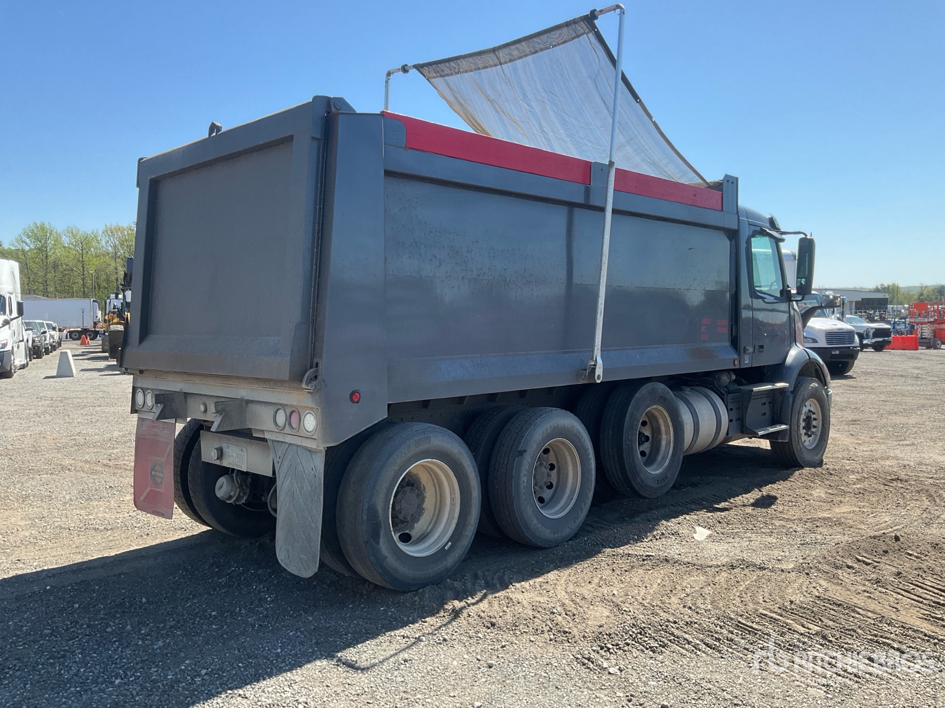 Located in Lane 44 Spot 23, Volvo D13M 12.8 L Diesel 425 hp Engine, 2018 US EPA Label, 18733 Engine hrs, Volvo ATO2612F 12-Speed Automated Transmission, 12350 lb Front Axle, 40000 lb Rears, Meritor MT-40-14X Drive Axles, 3.08:1 Axle Ratio, 52350 lb GVWR, Air Ride Cab, Aluminum Wheels, 315/80R22.5 Front Tires, 11R22.5 Rear Tires, Dual Steering Boxes, Double Frame, Spring Suspension, 225 in Wheelbase, 16 ft 5 in Long x 4 ft 6 in High Steel Body, Electric Roll Tarp