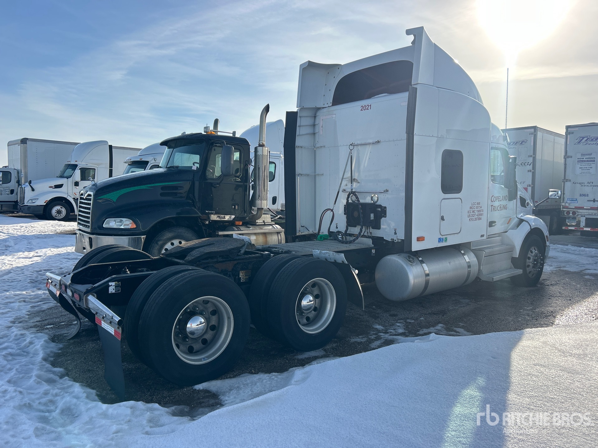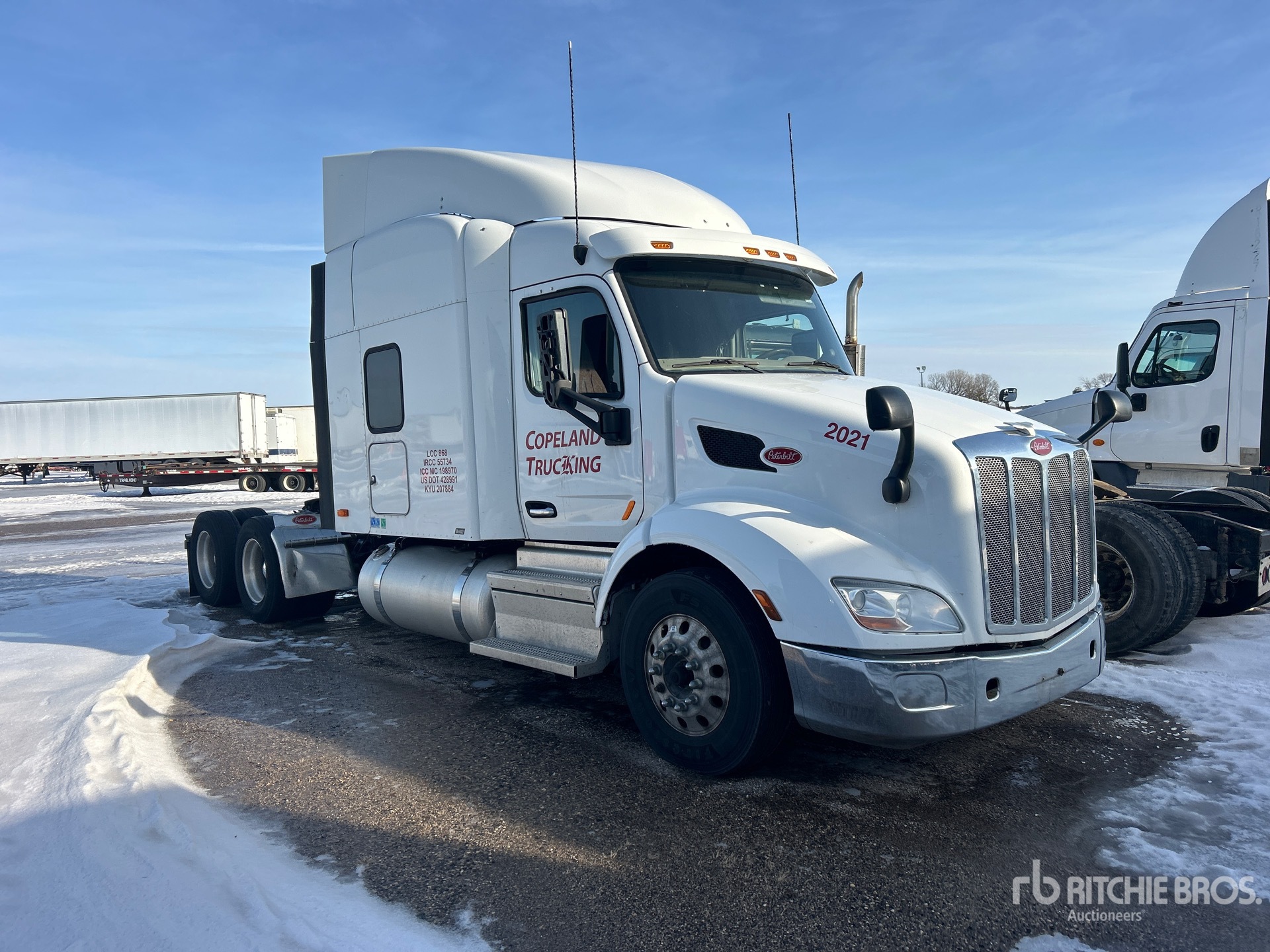 Paccar 455 hp Engine, Automated Transmission, 12000 lb Front Axle, 40000 lb Rears, 52000 lb GVWR, 58 in Mid Roof Sleeper Cab, 245 in Wheelbase, Air Suspension, Aluminum Wheels, 295/75R22.5, Air Sliding 5th Wheel, Dual Fuel Tanks