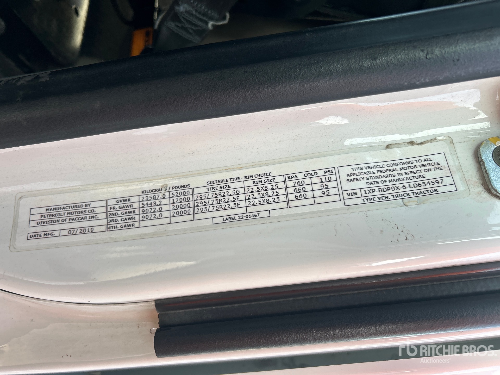 Paccar MX-13 455 hp Engine, 2019 US EPA Label, Automated Transmission, 12000 lb Front Axle, 40000 lb Rears, 52000 lb GVWR, Engine Brake, 58 in Mid Roof Sleeper Cab, 245 in Wheelbase, Air Suspension, Aluminum Front Wheels, 295/75R22.5, Air Sliding 5th Wheel, Dual Fuel Tanks