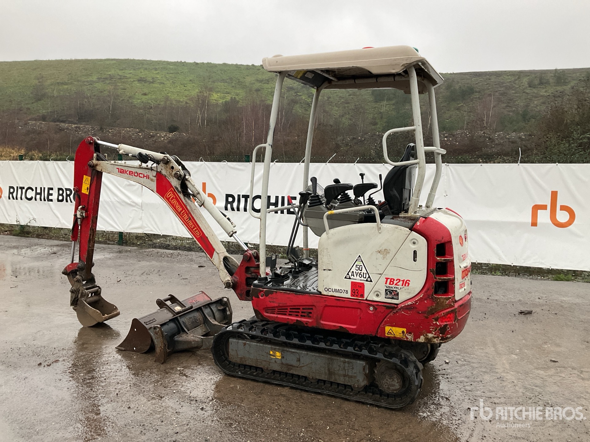 Swing Boom, 1150 mm Stick, Auxiliary Hydraulic Plumbing, Backfill Blade, Expandable Width Tracks, Manual Quick Coupler, 220 mm Cleanup Bucket