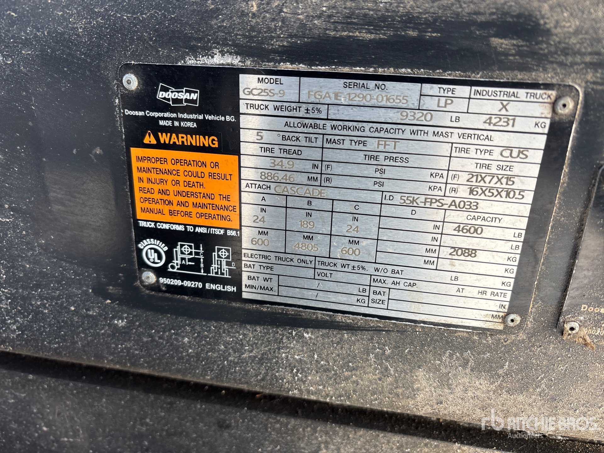 Le descrizioni dettagliate degli articoli non sono complete, Ritchie Bros. Auctioneers non ha effettuato alcuna ispezione delle componenti dell'articolo, salvo quelle espressamente indicate di seguito. Salvo espressamente indicato, non verrà fornita alcuna dichiarazione o garanzia, espressa o implicita, riguardante il funzionamento dell'articolo e delle sue componenti, incluso descrizioni o garanzie relative a funzionamento, conformità o osservanza di standard o requisiti di sicurezza eventualmente previsti da organi di vigilanza o competenti, dichiarazioni di idoneità o commerciabilità. Si raccomanda di prendere personalmente visione di ogni componente dell'articolo in modo accurato prima di fare un'offerta.