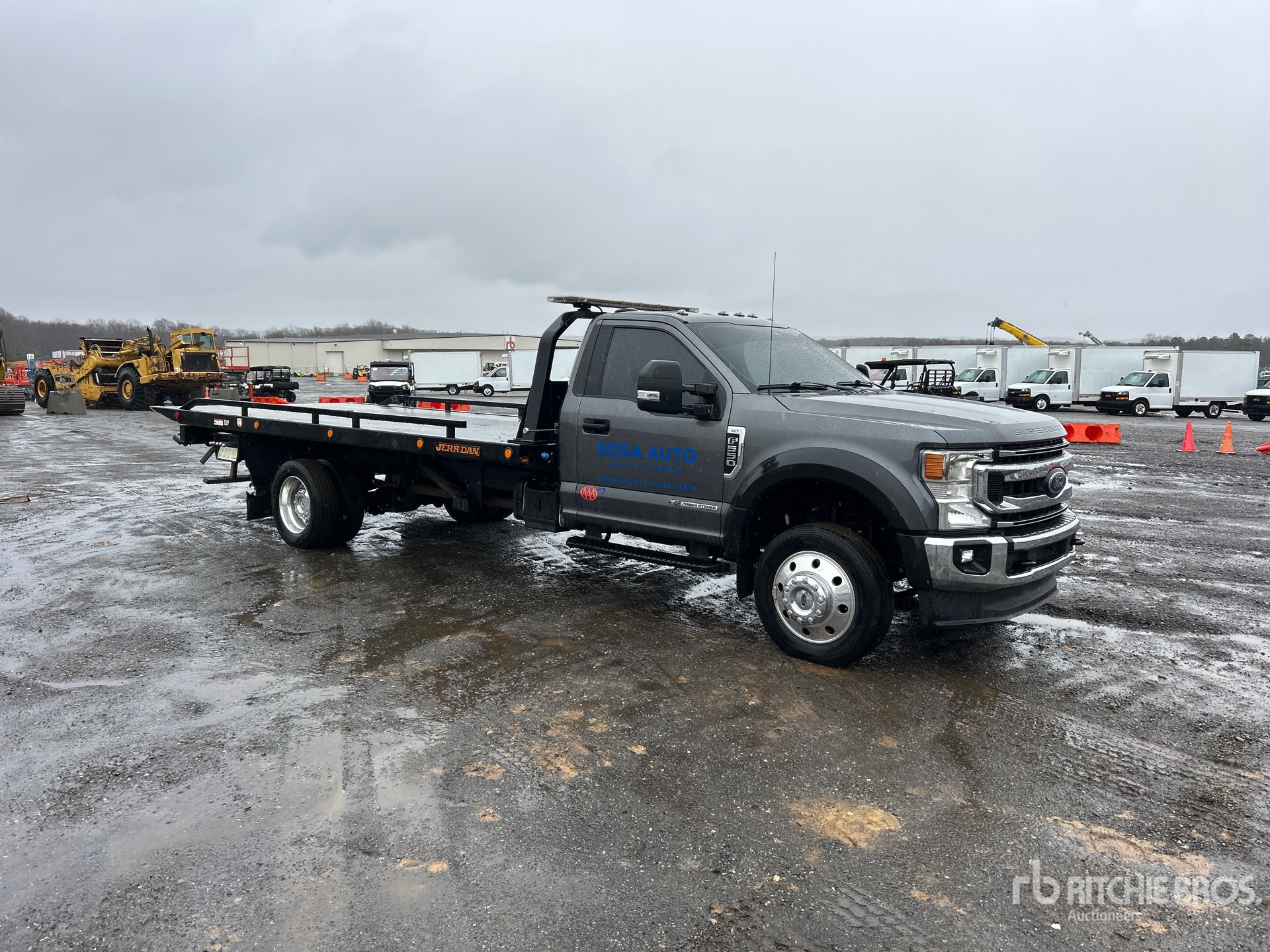 Ford V8 Diesel Engine, 2021 US EPA Label, Automatic Transmission, 7000 lb Front Axle, 13660 lb Rears, 18000 lb GVWR, 225/70R19.5, Spring Suspension, 206 in Wheelbase, Jerridan SD-UNI Rollback Body, 19 ft x 96 in Bed, Ramsey Winch, Hydraulic Wheel Lift