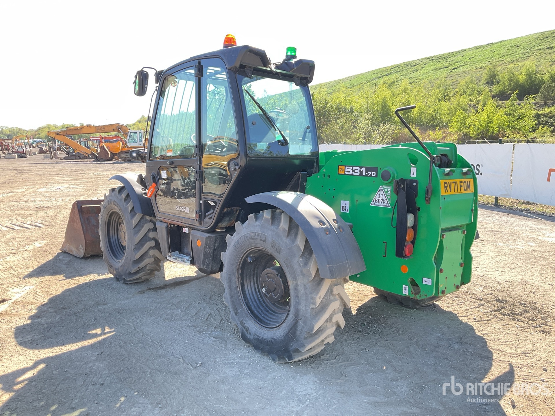 Enclosed Cab, Rear View Camera, Load Moment Indicator, 7 m Max Lift Height, 3100 kg Max Lift Capacity, Bucket, Manual Coupler, 400/80-24 Tires