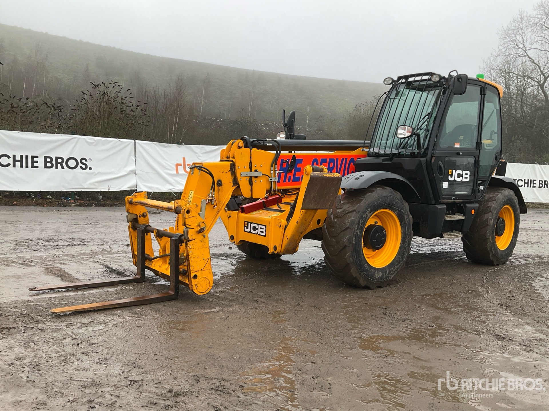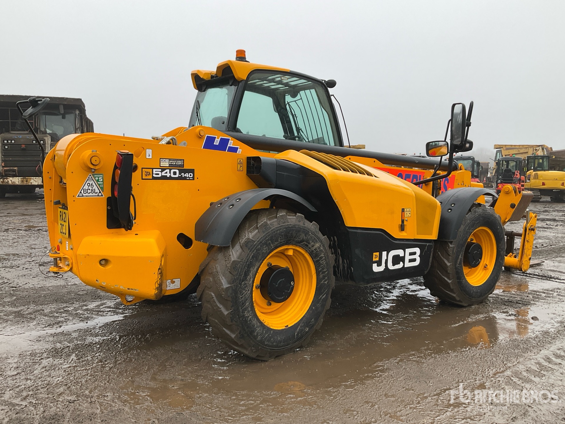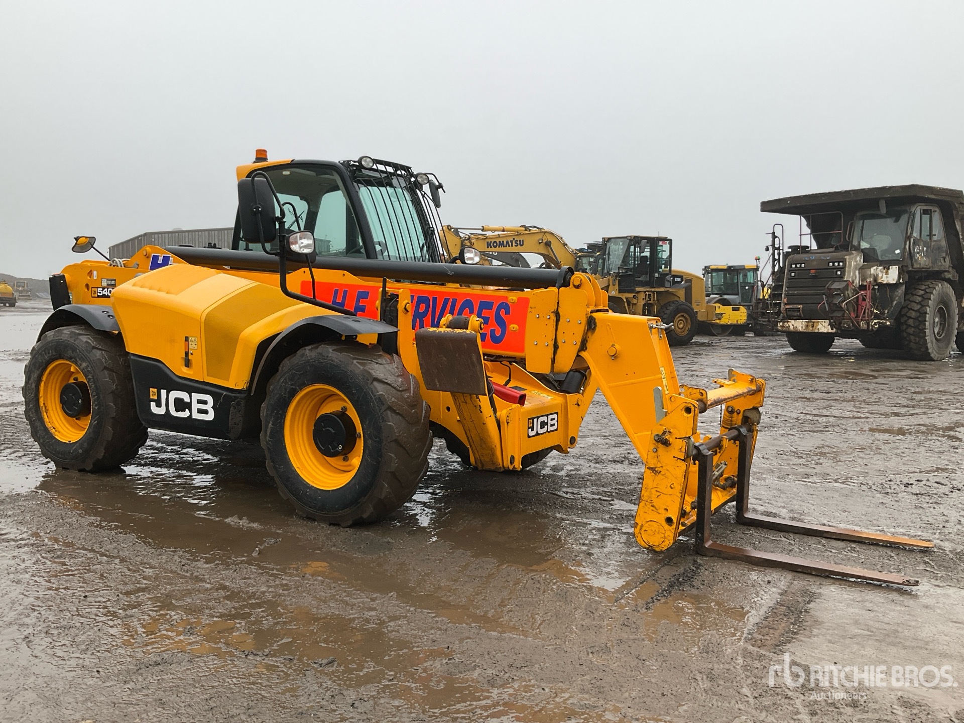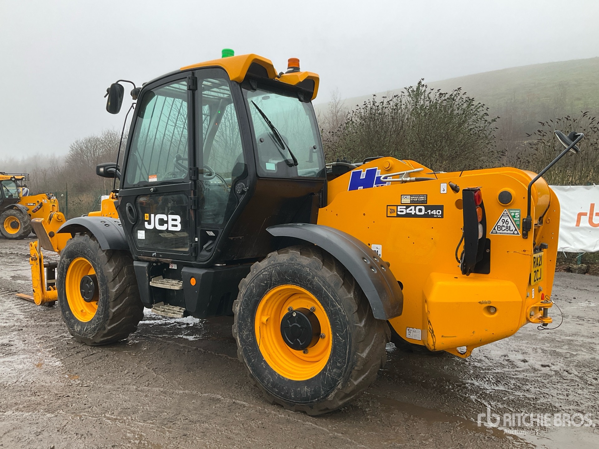 Enclosed Cab, Load Moment Indicator, 13.78 m Max Lift Height, 4000 kg Max Lift Capacity, 1060 mm Forks, Manual Coupler, Outriggers, Frame Leveling, Auxiliary Hydraulic Plumbing, 15.5/80-24 Tires