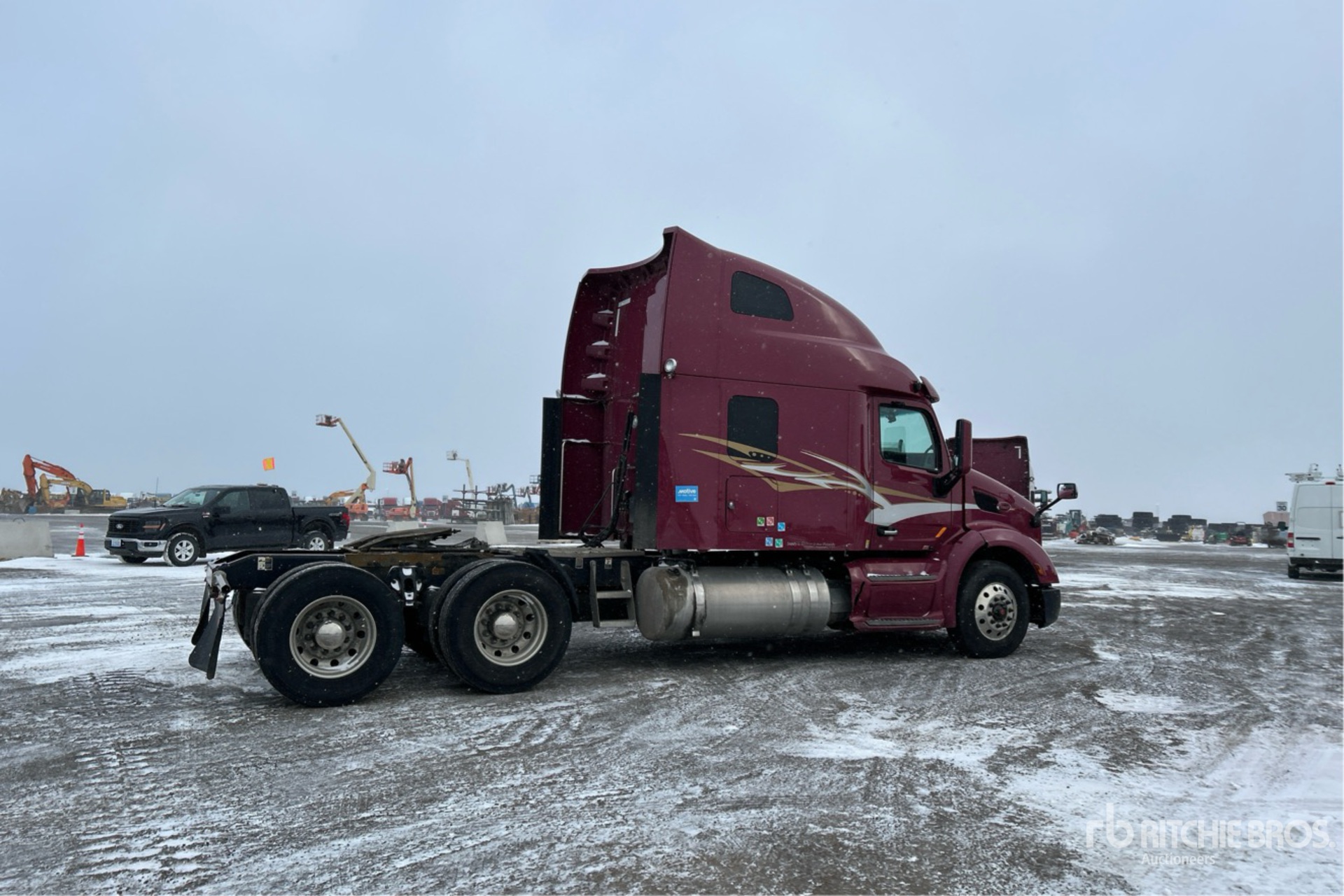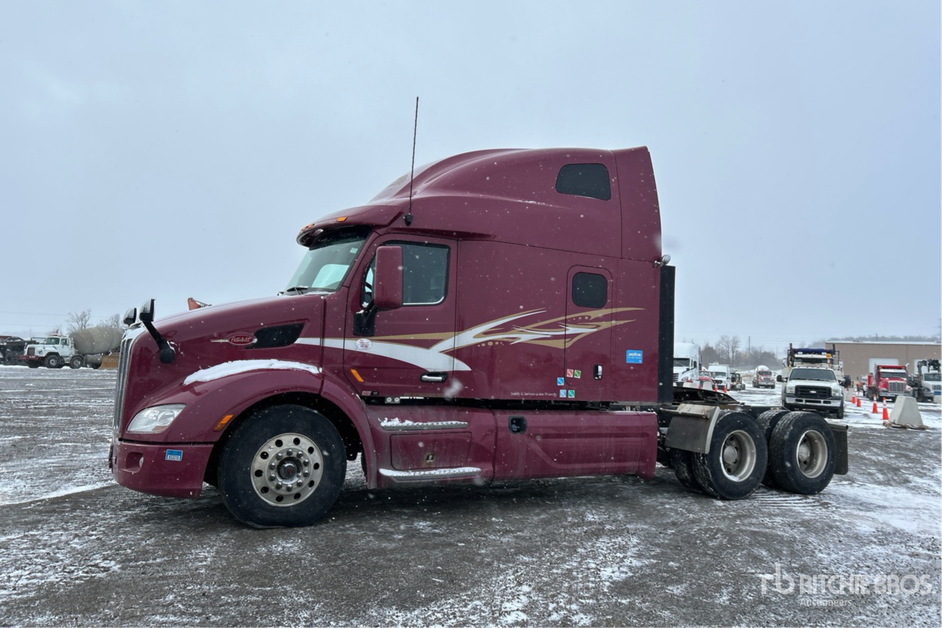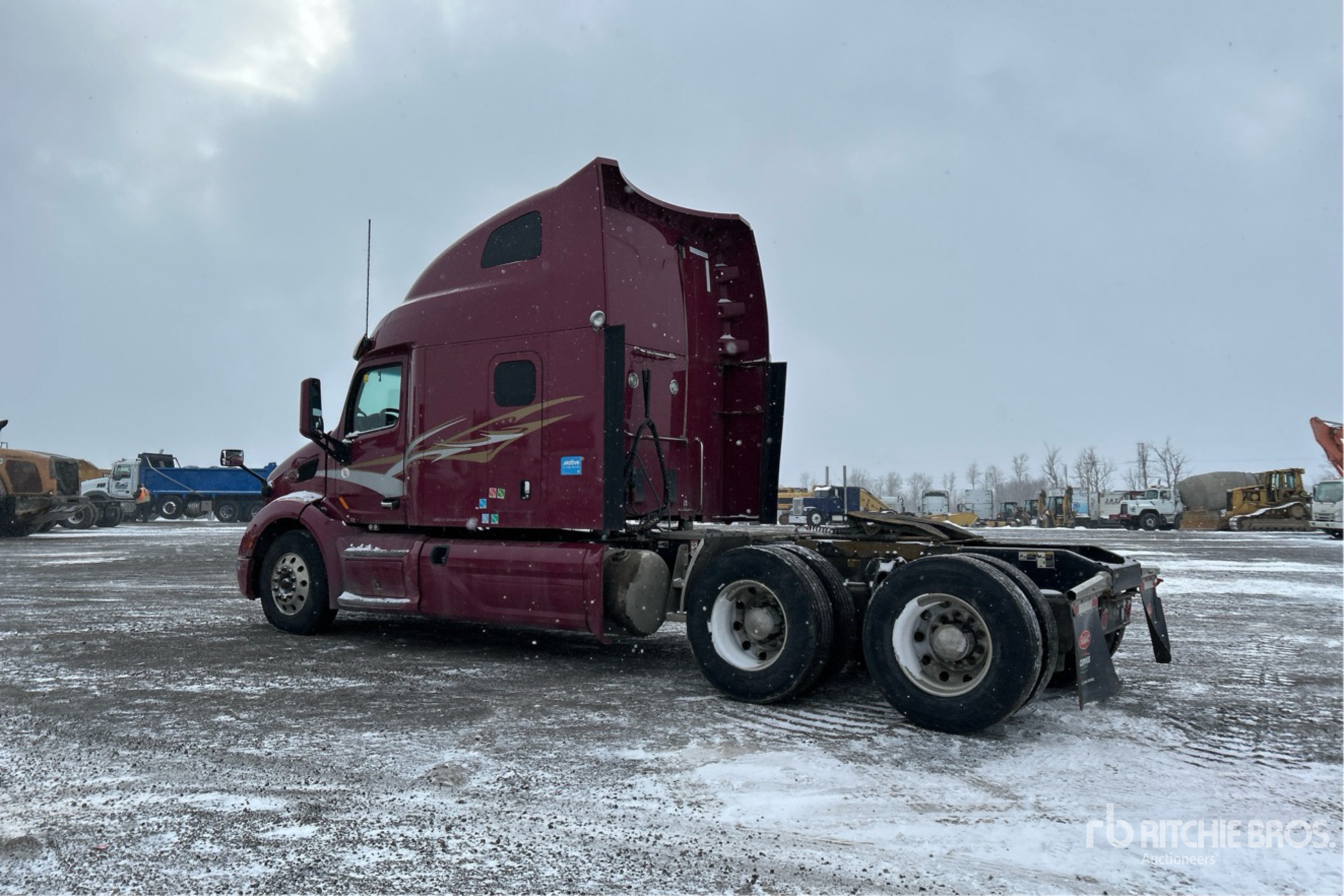 Paccar MX-13 Engine, 19532 Engine hrs, 13200 lb Front Axle, 40000 lb Rears, 53200 lb GVWR, Engine Brake, Differential Lock, 70 in High Rise Sleeper Cab, Bunk Beds, 232 in Wheelbase, Air Suspension, Aluminum Wheels, 11R22.5, Air Sliding 5th Wheel, Dual Fuel Tanks