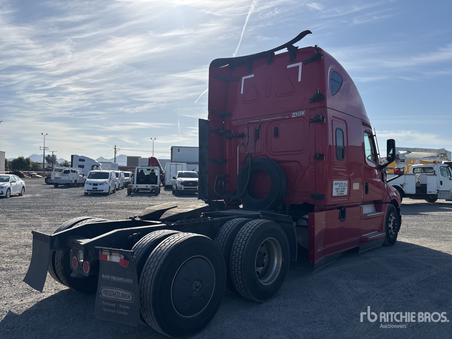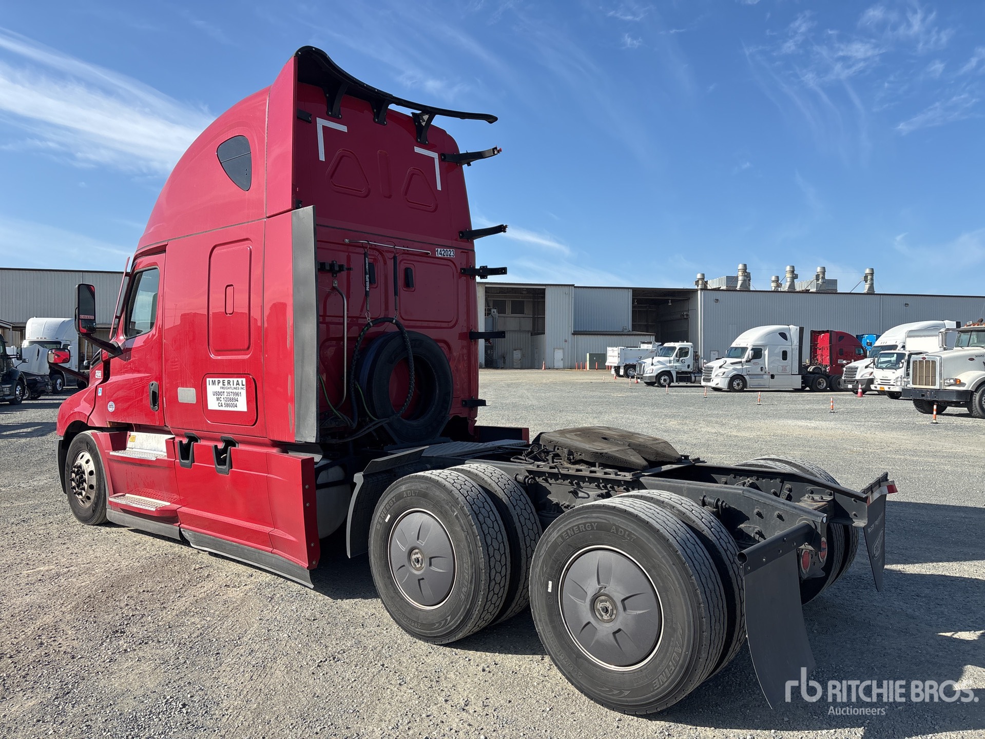 Detroit DD15 455 hp Engine, 2021 US EPA Label, 14685 Engine hrs, Detroit Dt12-1750-DHE Automated Transmission, 12350 lb Front Axle, 40000 lb Rears, 52350 lb GVWR, Engine Brake, 72 in High Rise Sleeper Cab, Bunk Beds, 227 in Wheelbase, Air Suspension, Aluminum Wheels, 295/75R22.5, Air Sliding 5th Wheel, Dual Fuel Tanks