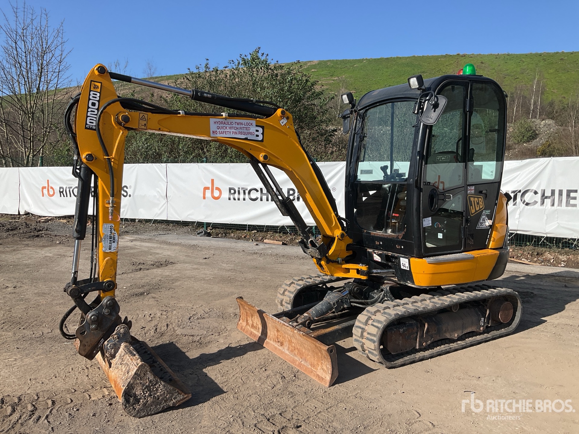 Enclosed Cab, Swing Boom, 1300 mm Stick, Auxiliary Hydraulic Plumbing, Backfill Blade, 300 mm Rubber Tracks, Hydraulic Quick Coupler, 1220 mm Cleanup Bucket