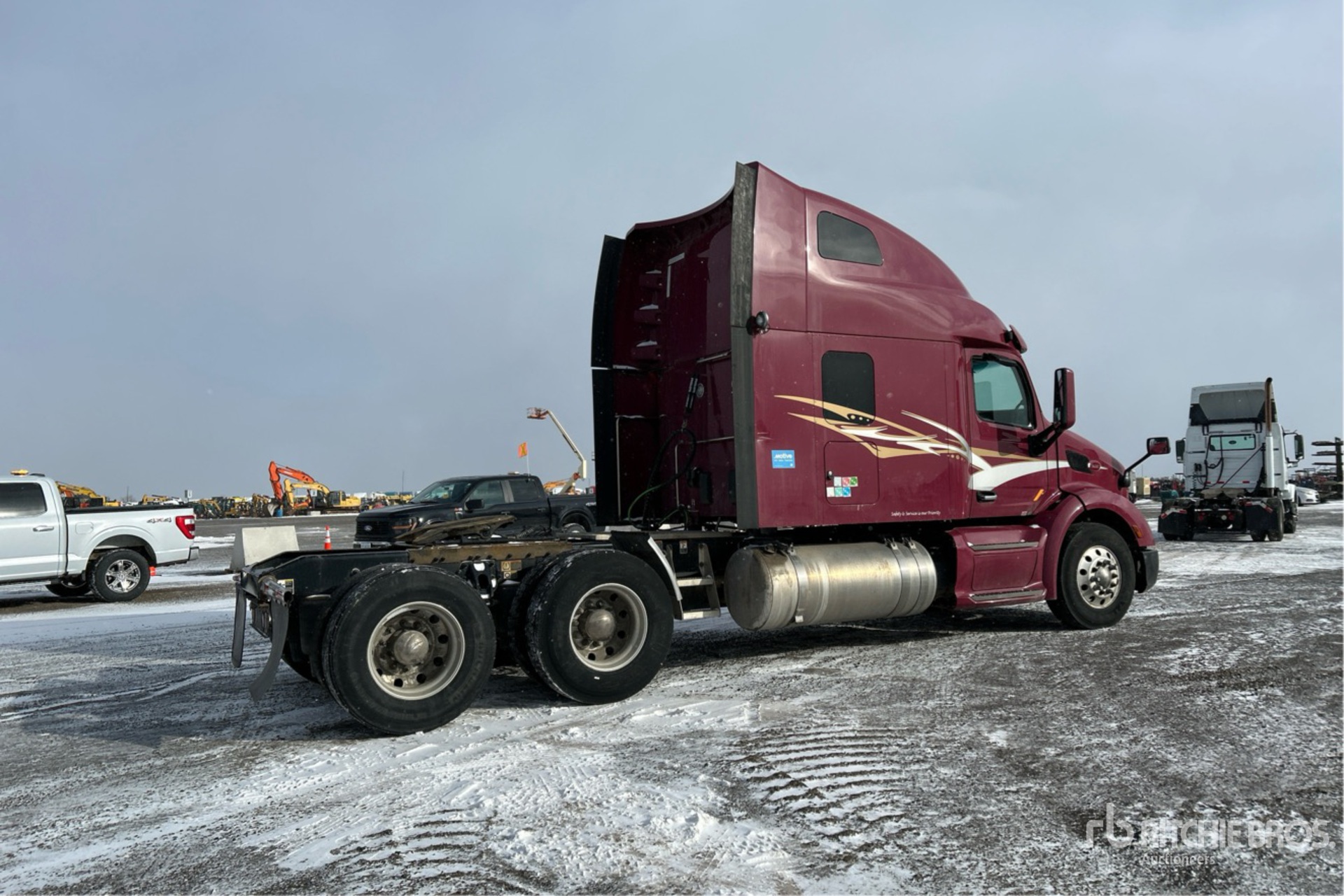 Paccar MX-13 Engine, 20830 Engine hrs, 13200 lb Front Axle, 40000 lb Rears, 53200 lb GVWR, Engine Brake, Differential Lock, 70 in High Rise Sleeper Cab, Bunk Beds, 232 in Wheelbase, Air Suspension, Aluminum Wheels, 11R22.5, Air Sliding 5th Wheel, Dual Fuel Tanks