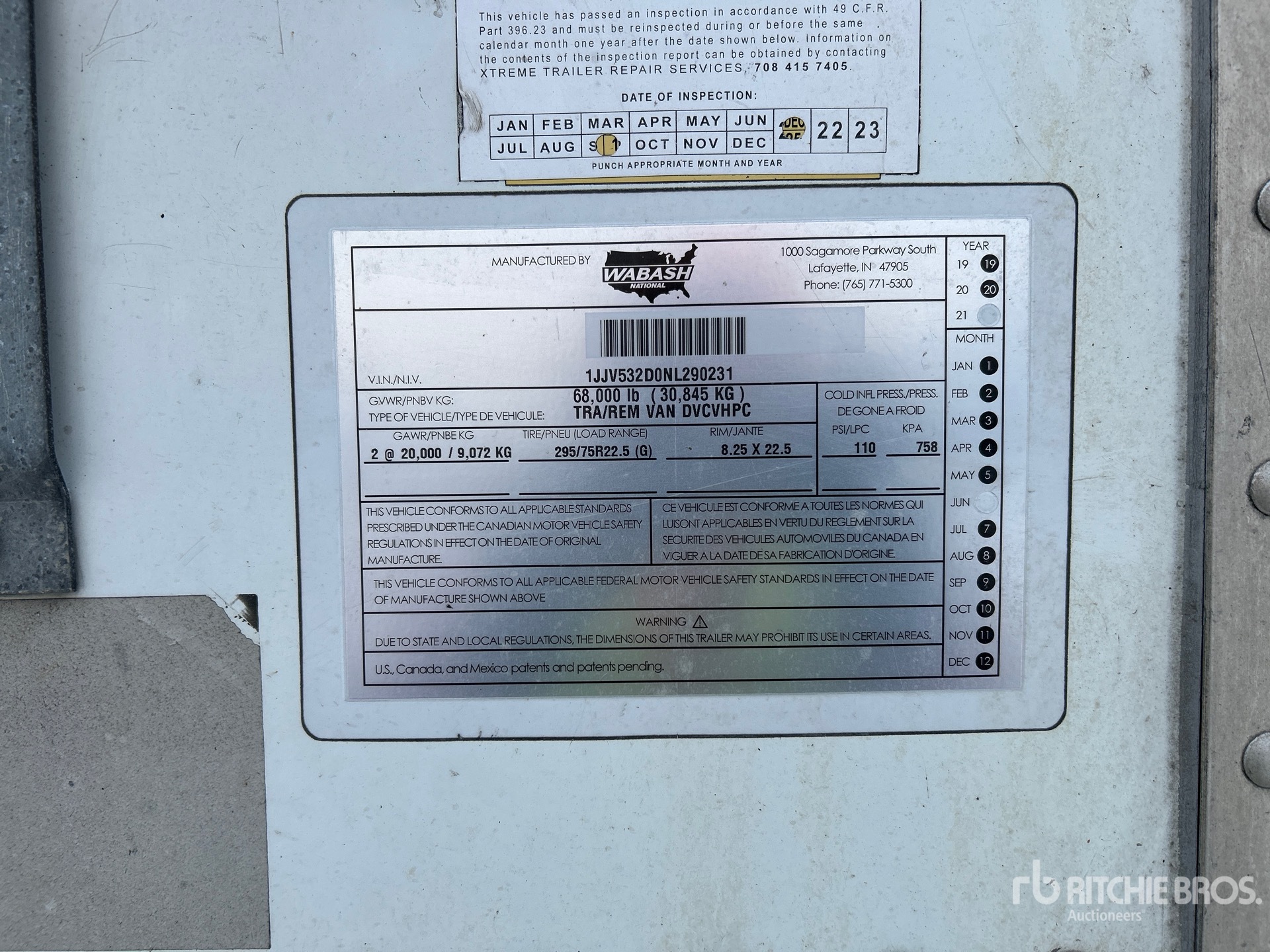 Air Ride Sliding Suspension, Hardwood Floor, Swing Door, 295/75R22.5 Tires 68000 lb GVWR