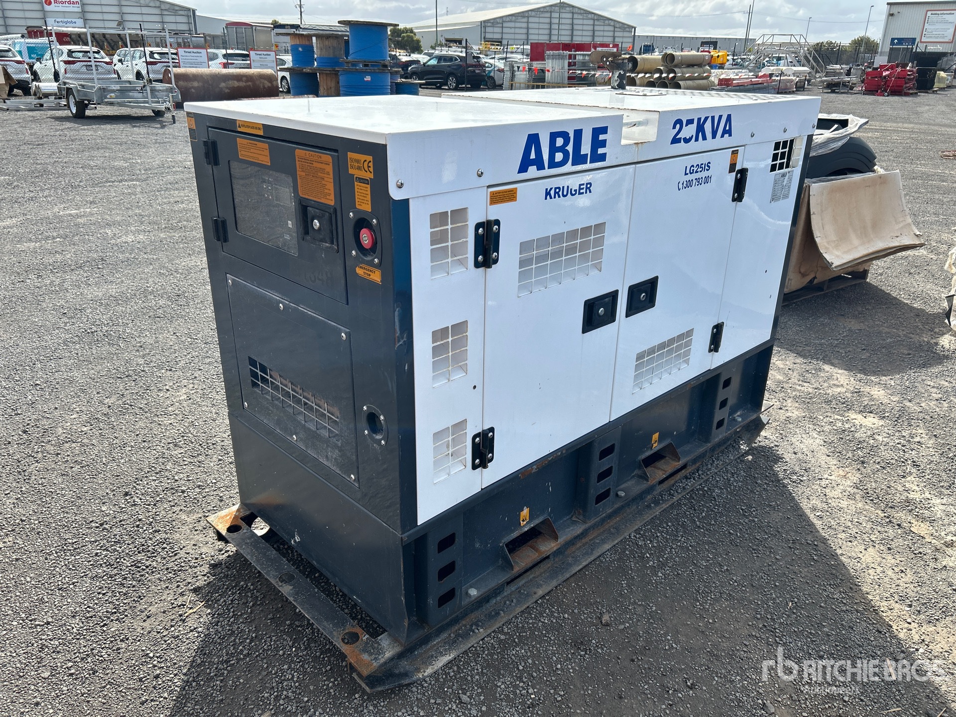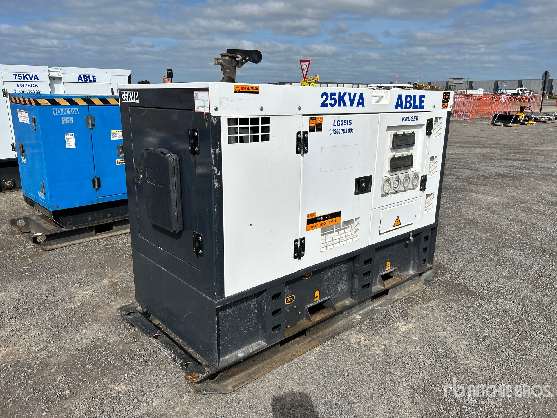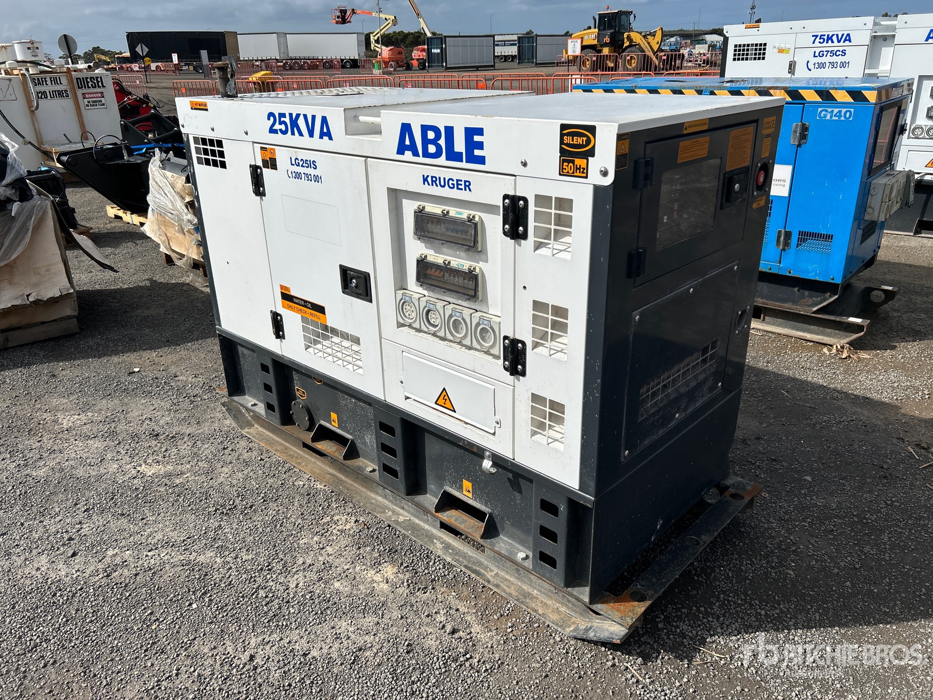 4 Cylinder Diesel Engine, 25 kVA/ Rated 3 Phase Output, 240 V / 415 V Rated Voltage, Sound Attenuated, Bottom Mounted Fuel Tank, E-Stops