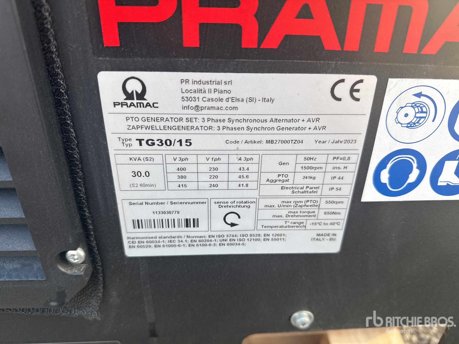 Il macchinario non è stato testato con carico o con tutte le marce. Non rilasciamo alcuna dichiarazione o garanzia che il macchinario funzioni secondo le specifiche del produttore. Non sono state eseguite verifiche di funzionamento sulle componenti della macchina, salvo per le parti qui indicate. Sono disponibili foto specifiche delle singole componenti della macchina, da considerarsi puramente indicative e non rappresentative delle loro effettive condizioni.