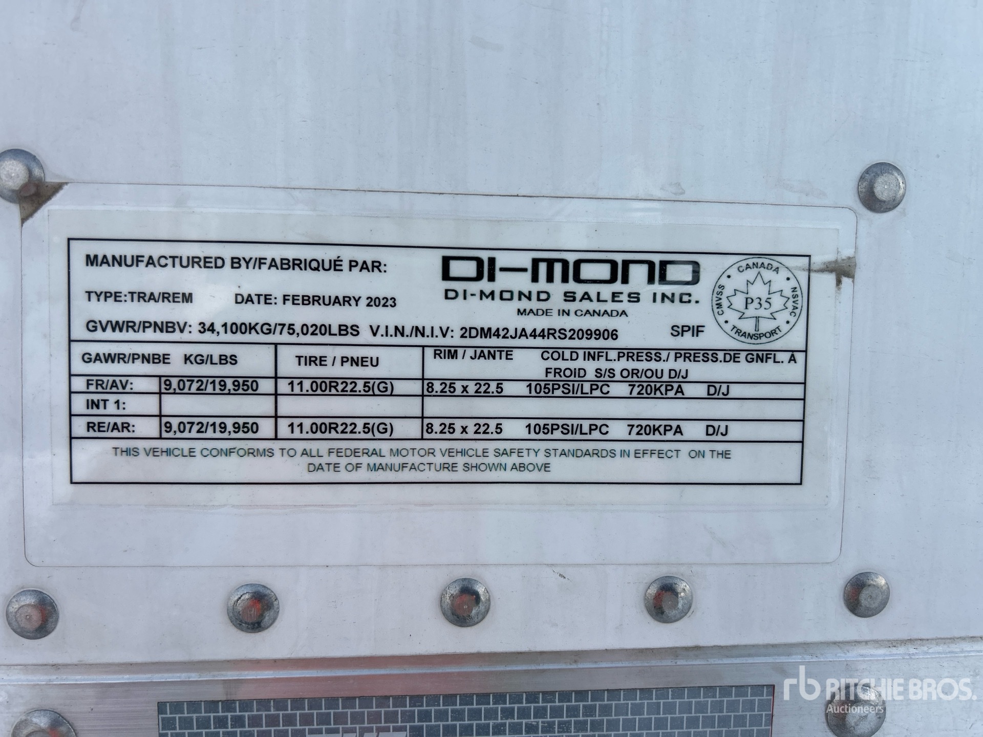Air Ride Sliding Suspension, Hardwood Floor, Swing Door, 11R22.5 Tires, 34100 kg GVWR
