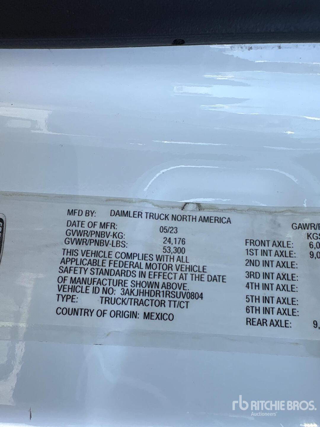 Located in Lane 9 Spot 39, Detroit DD15 505 hp Engine, 2023 US EPA Label, Detroit DT12-1750-OHE 12-Speed Automated Transmission, 13300 lb Front Axle, 40000 lb Rears, 53300 lb GVWR, Engine Brake, 72 in High Rise Sleeper Cab, Bunk Beds, Bunk Heater, 235 in Wheelbase, Air Suspension, Aluminum Wheels, 295/75R22.5, Air Sliding 5th Wheel, Dual Fuel Tanks