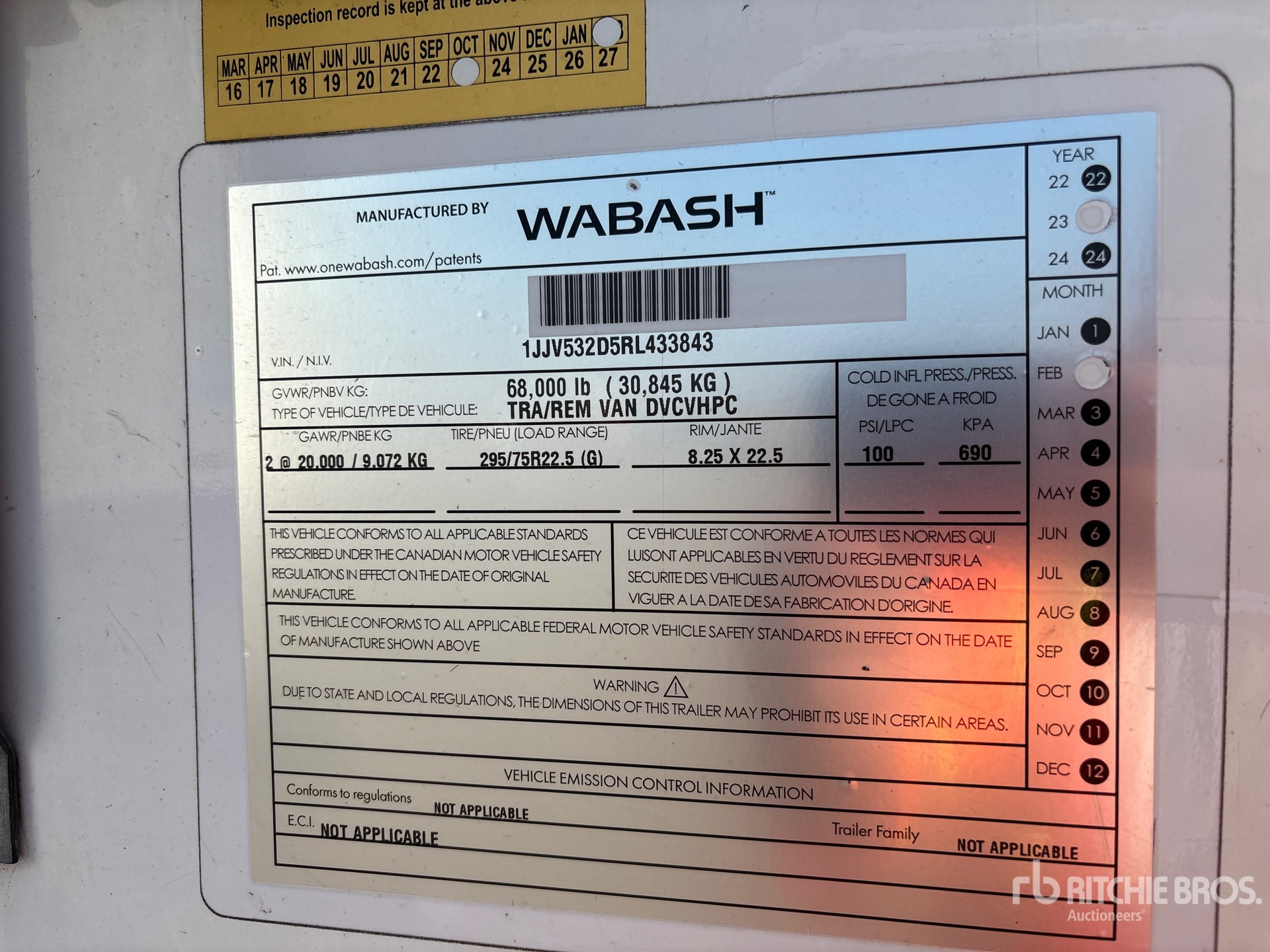 Located in Lane 22 Spot 21, Air Ride Sliding Suspension, Hardwood Floor, Swing Door, 295/75R22.5 Tires 68000 lb GVWR