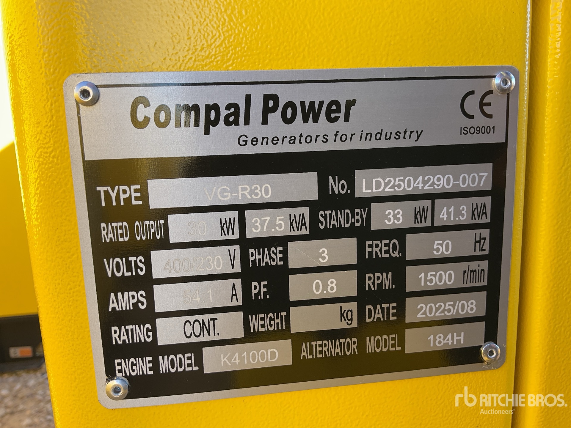 Diesel Engine, /30 kW Rated 3 Phase Output, / 230 V / 400 V Rated Voltage, Sound Attenuated