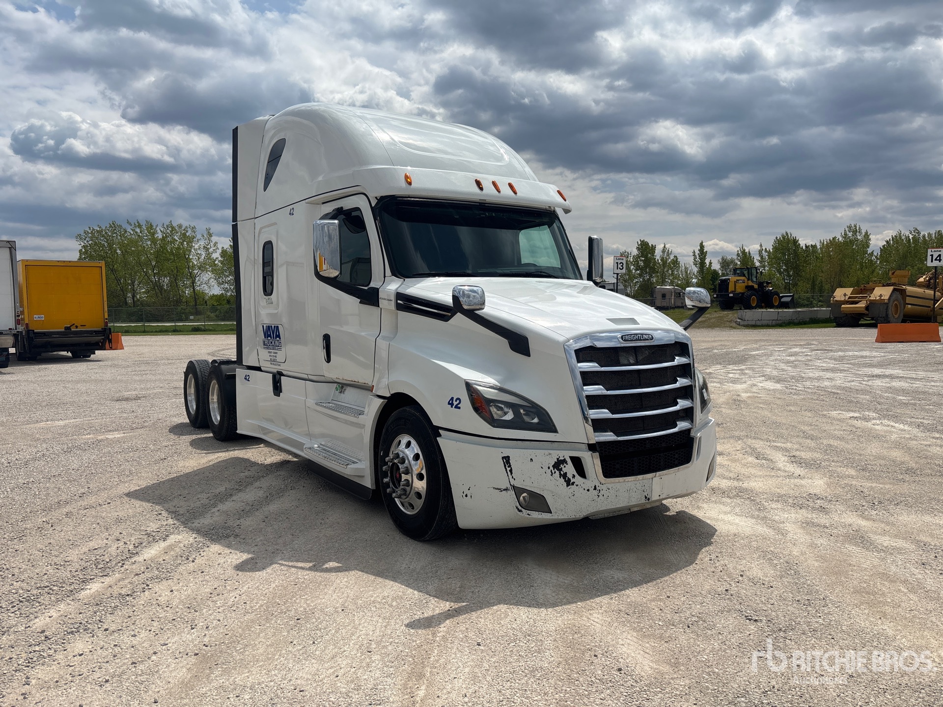 Located in Lane 18 Spot 39, Detroit DD15 Engine, 2024 US EPA Label, 5931.0 Engine hrs, Detroit DT12-1650-OHE 12-Speed Automated Transmission, 12350 lb Front Axle, 40000 lb Rears, 52350 lb GVWR, Engine Brake, 72 in High Rise Sleeper Cab, Bunk Beds, Bunk Heater, 229 in Wheelbase, Air Suspension, Aluminum Wheels, 295/75R22.5, Air Sliding 5th Wheel, Dual Fuel Tanks, Equipment-from-Vaya-Trucking;