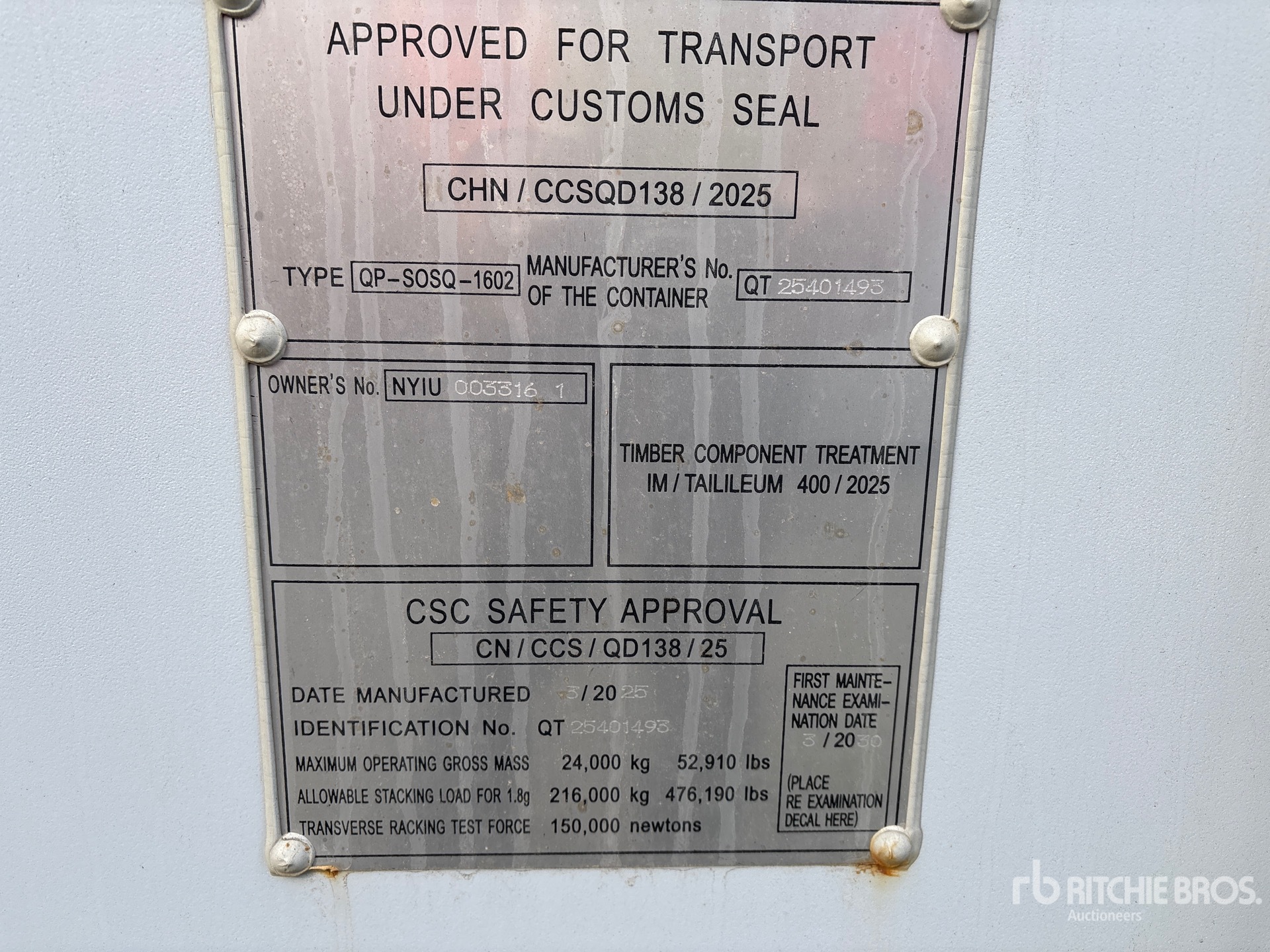 Un dipendente specializzato di Ritchie Bros. ha raccolto i dati dettagliati relativi all'articolo e ha testato il funzionamento dei principali componenti del bene. Inoltre, tu o un tuo delegato potete ispezionare qualsiasi articolo presente nel piazzale prima di fare offerte all'asta.