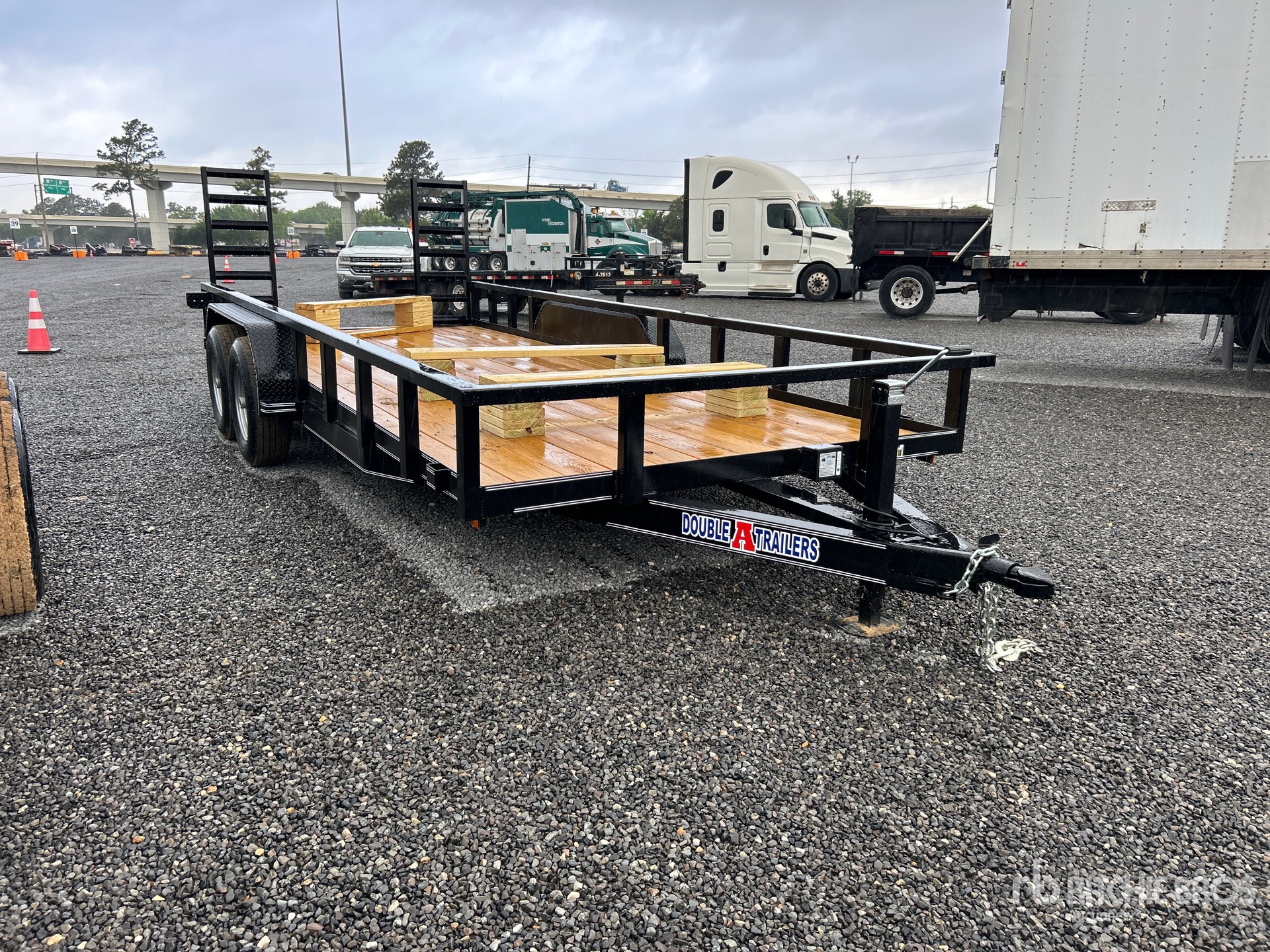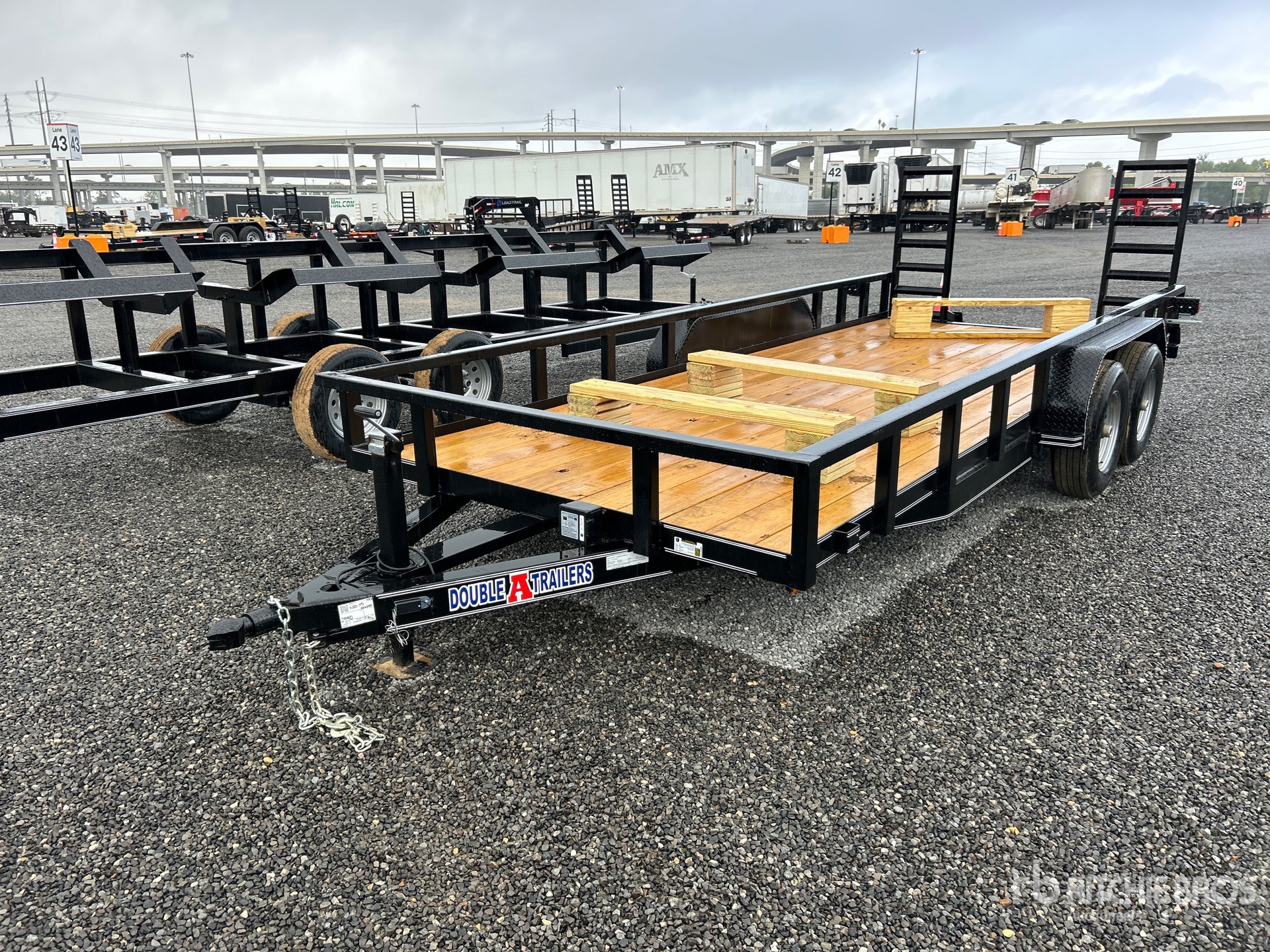 Ball Hitch, Spring Suspension, Electric Brakes, 18 ft Main Deck, 82 in Usable Deck Width, 82 in Overall Deck Width, Manual Ramps, Wood Flooring, 205/75R15 Tires, 9995 lb GVWR, 83 X 18 T/A 5200# 10,400 GVWR, 1- Brake, Angle Frame, & Angle wrap tong, ST225/75R15 Tires "8ply", 2-5/16 BD Style Coupler, 7k DLJ, Rectangle Top rail, Wiring & LED lights, Safety Chains, 7 Way Plug, Diamond Plate Fenders, 2" Treated Lumber Floor, Ramp Lip, Tail Board Holder, SUR