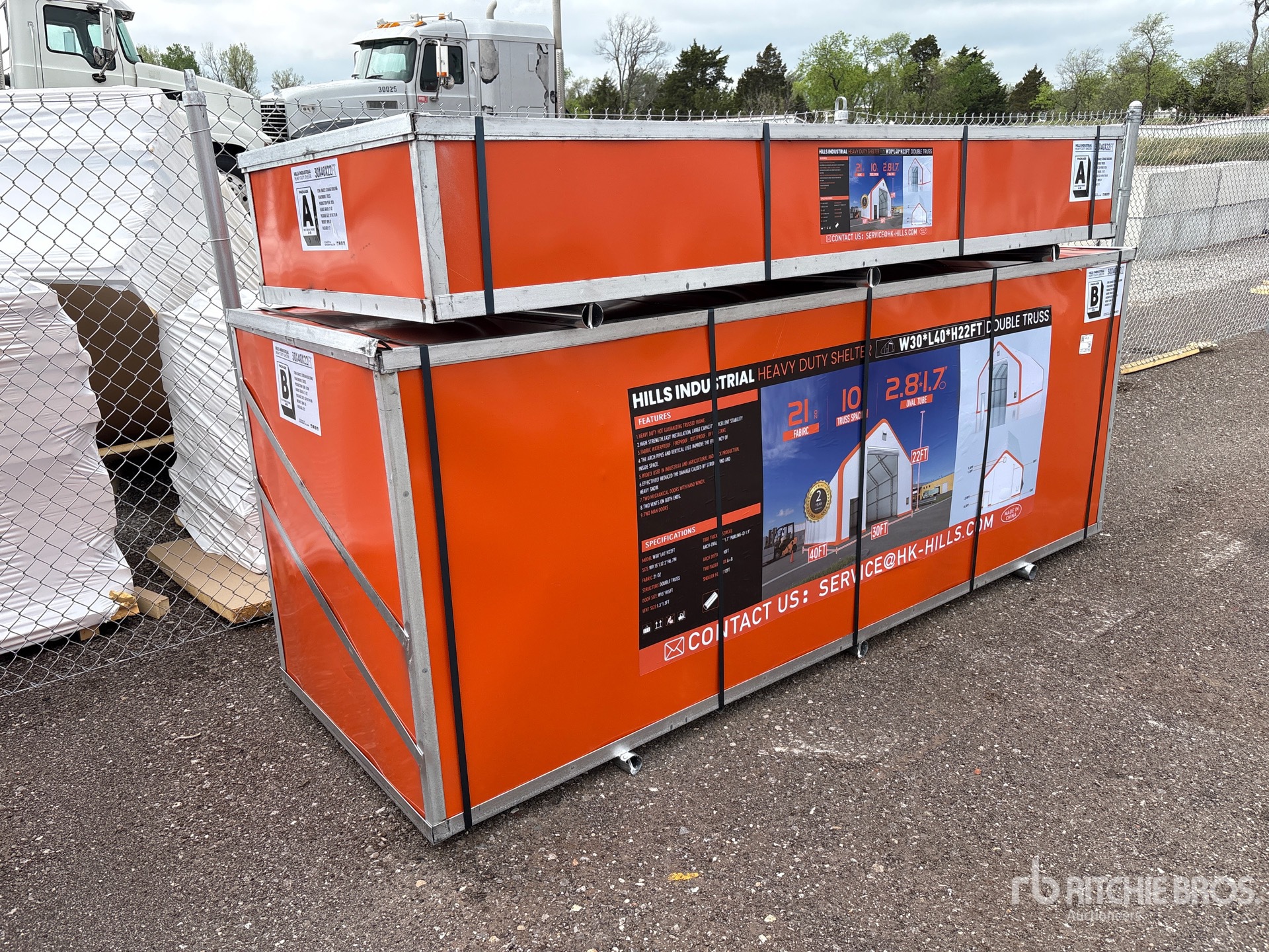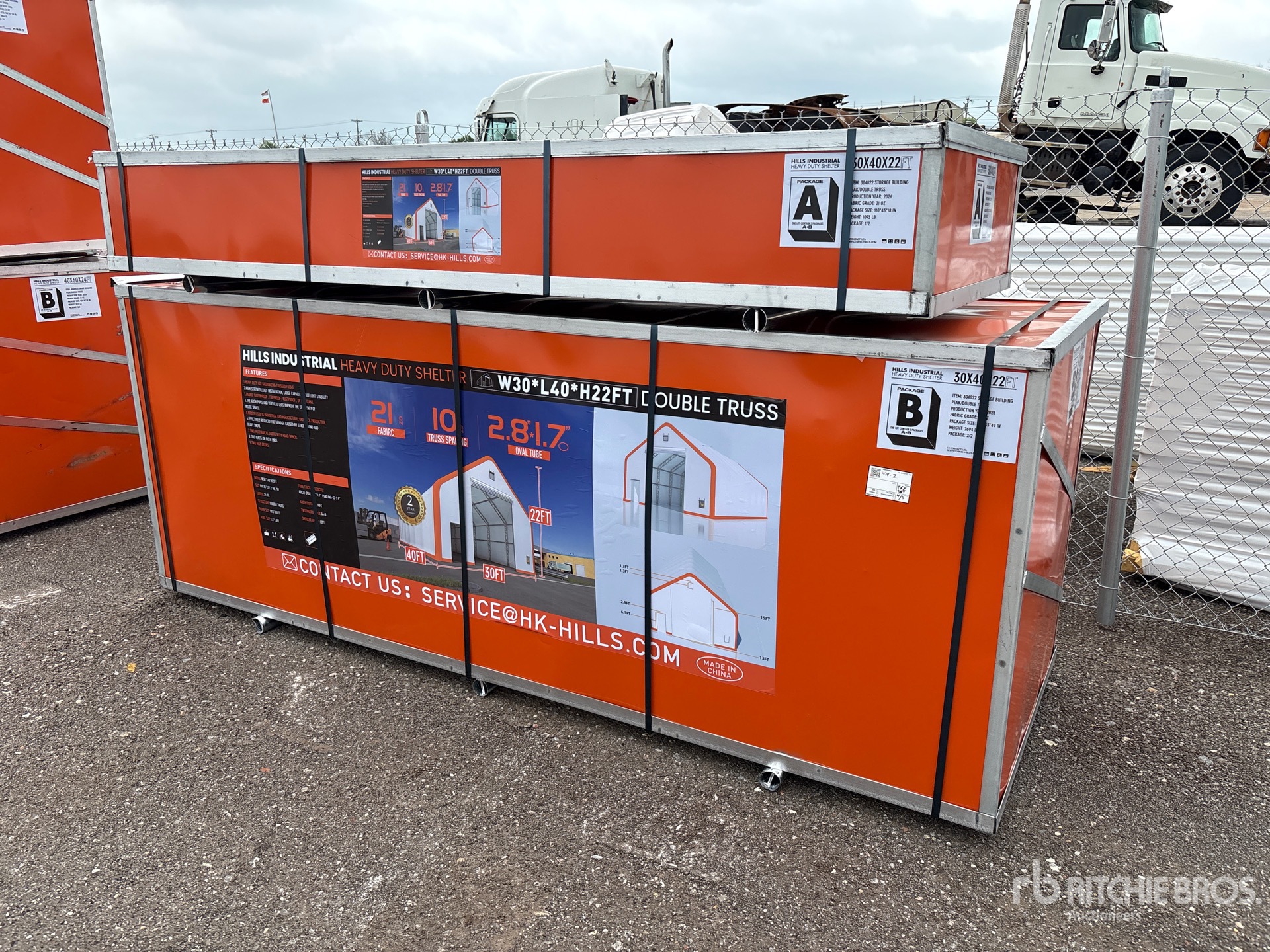 22 ft Total Height, 15 ft Sidewall Height, Quantity of (2) Boxes - Builds (1) Storage Building, Item is new/unused.