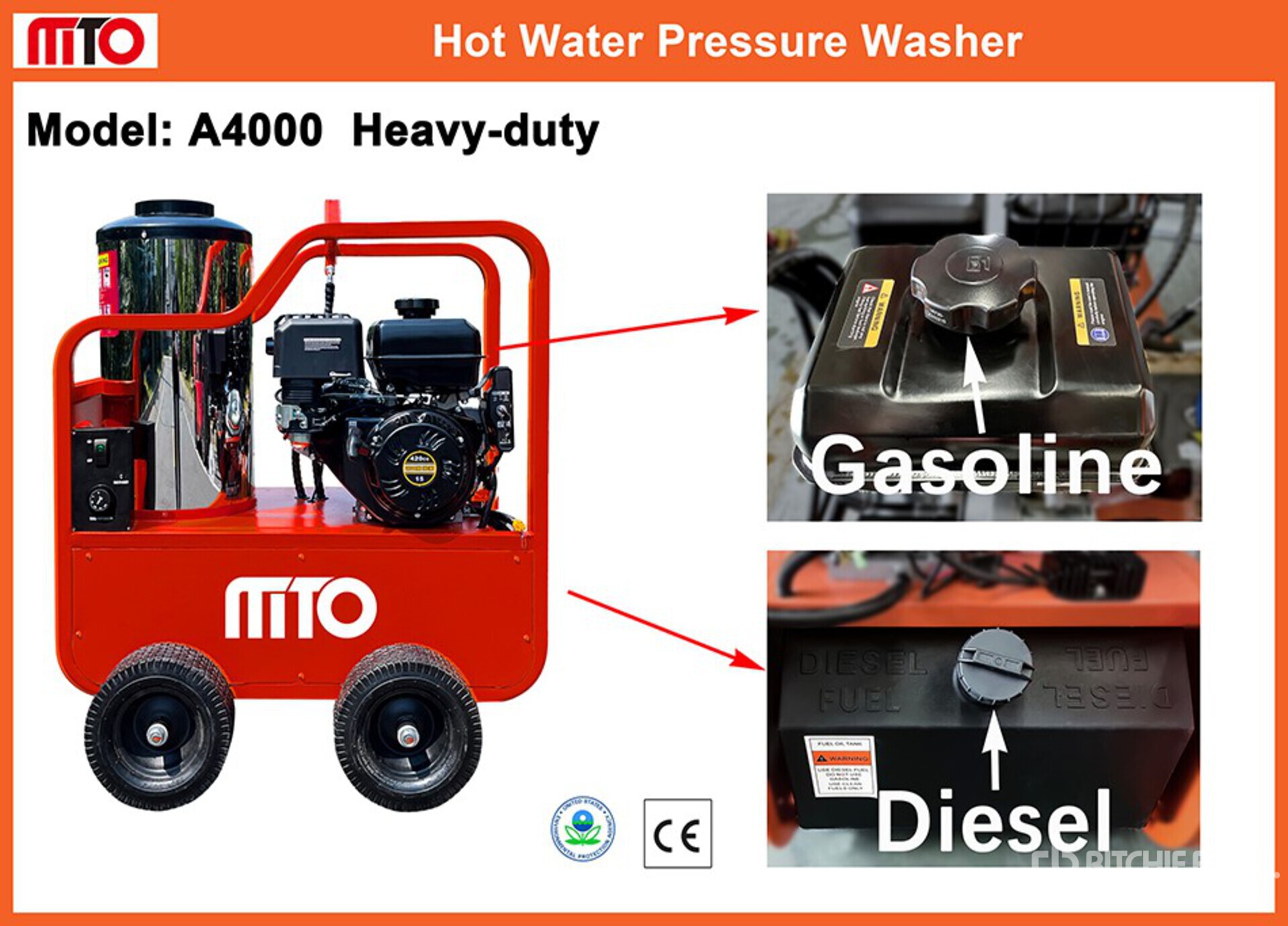4000 psi Rating, Water Heater, Hose, Spray Wand, 1 Cylinder 420 cc Gasoline Engine, 4.0 gpm