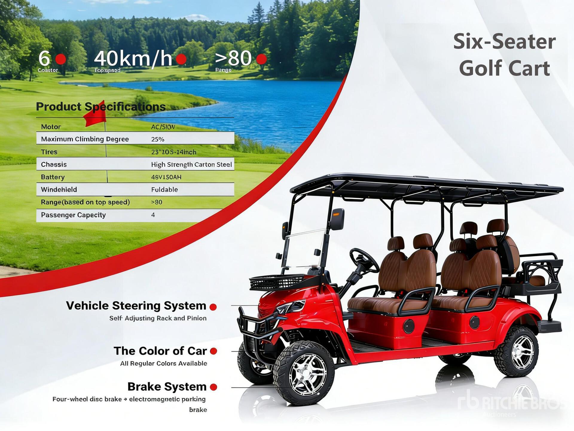 48 Volt 6 Passenger, Canopy, Windshield, Colour: Red