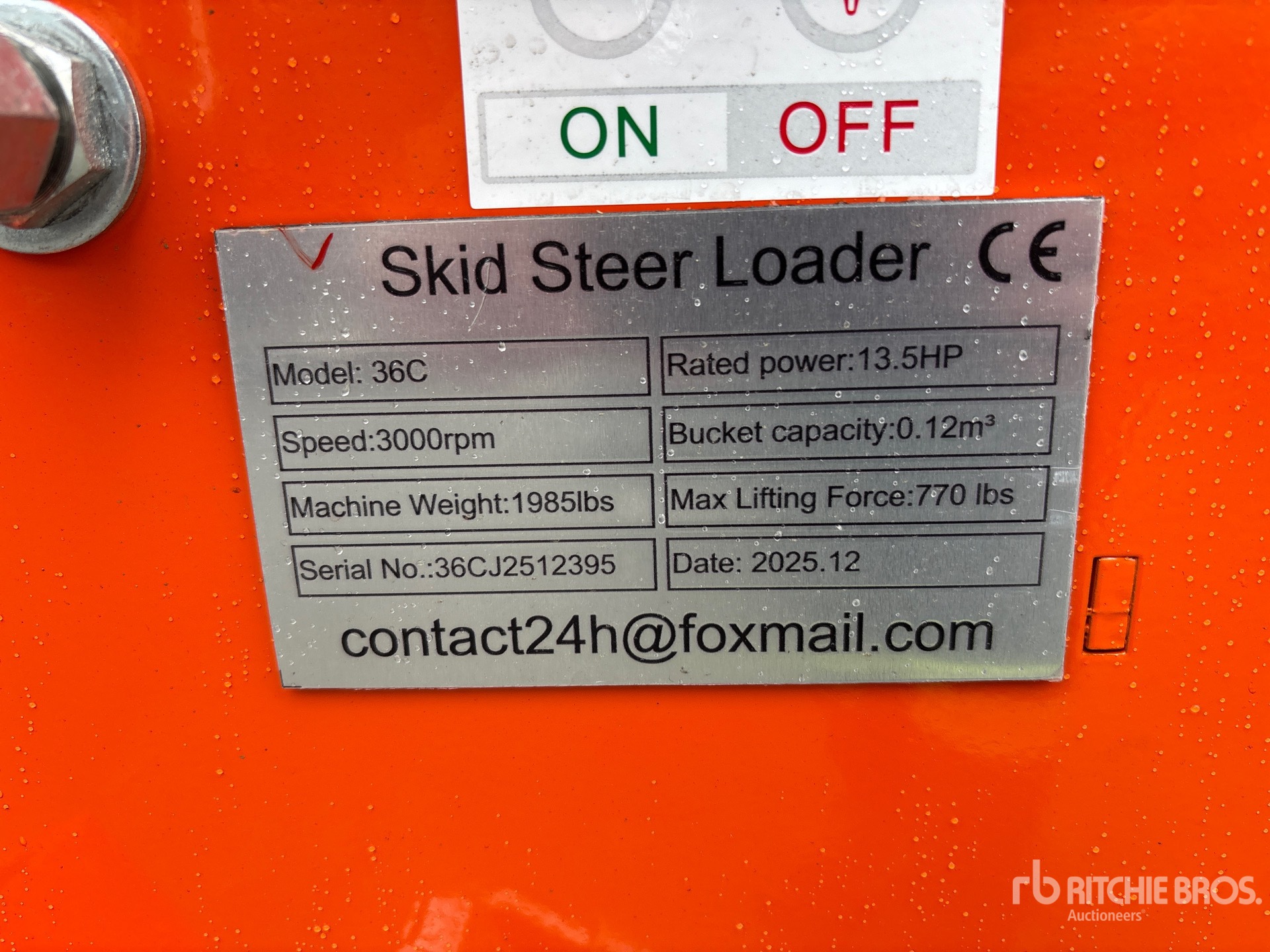 Le descrizioni dettagliate degli articoli non sono complete, Ritchie Bros. Auctioneers non ha effettuato alcuna ispezione delle componenti dell'articolo, salvo quelle espressamente indicate di seguito. Salvo espressamente indicato, non verrà fornita alcuna dichiarazione o garanzia, espressa o implicita, riguardante il funzionamento dell'articolo e delle sue componenti, incluso descrizioni o garanzie relative a funzionamento, conformità o osservanza di standard o requisiti di sicurezza eventualmente previsti da organi di vigilanza o competenti, dichiarazioni di idoneità o commerciabilità. Si raccomanda di prendere personalmente visione di ogni componente dell'articolo in modo accurato prima di fare un'offerta.