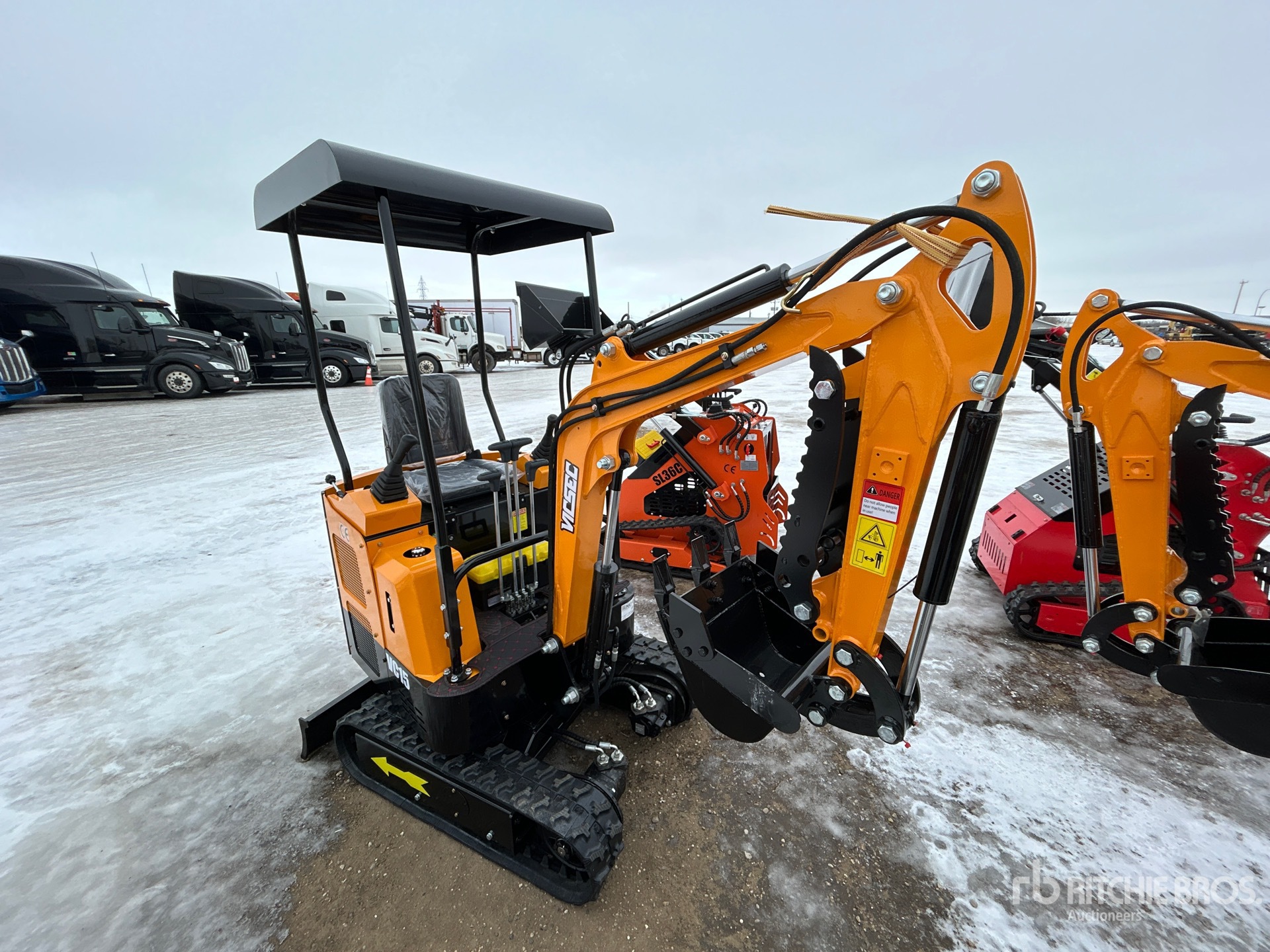 2025 US EPA Label, 2 ft 7 in Stick, Auxiliary Hydraulic Plumbing, Backfill Blade, 7 in Rubber Tracks, 16 in Digging Bucket, Manual Thumb