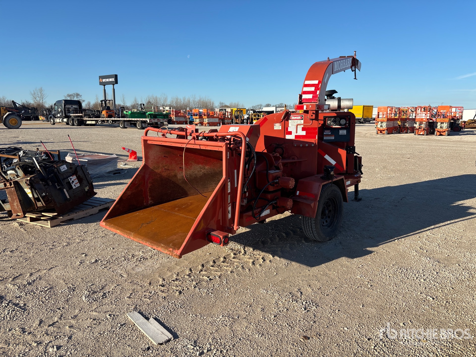 2002 US EPA Label, Perkins 4 Cylinder Gasoline Engine, 12 in Feed Opening, Swivel Discharge Chute, Lunette Ring Carrier Trailer, Electric Brakes
