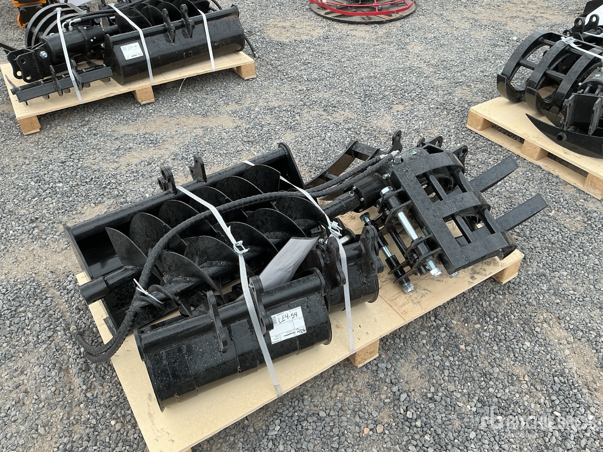 (1) 8 in Bucket, (1) 20 in Bucket, (1) 32 in Bucket, (1) Quick Coupler, (1) Ripper, (1) Grapple, (1) Rake, (1) 8 in Auger, (1) 12 in Auger,