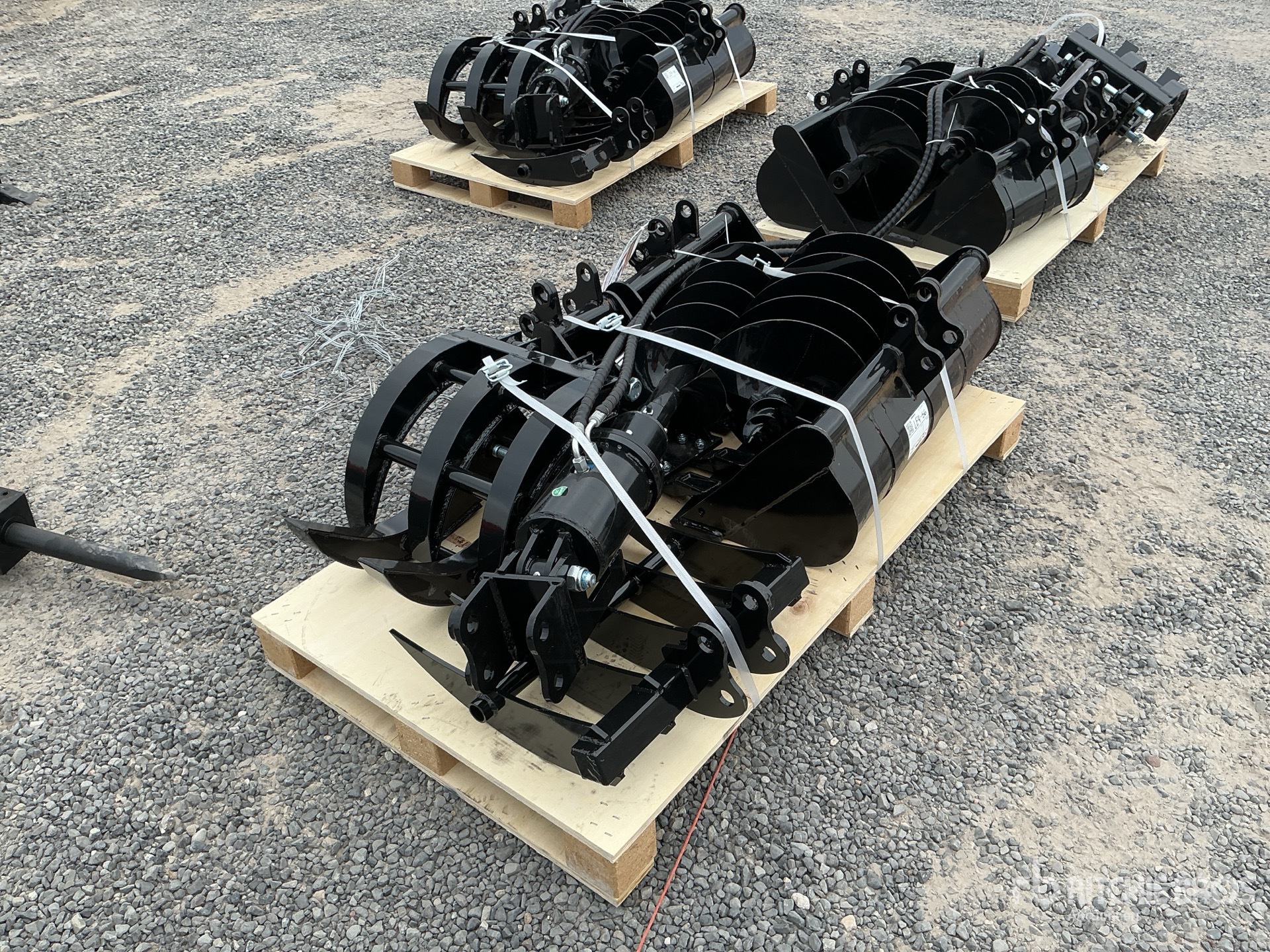 (1) 8 in Bucket, (1) 20 in Bucket, (1) 32 in Bucket, (1) Quick Coupler, (1) Ripper, (1) Grapple, (1) Rake, (1) 8 in Auger, (1) 12 in Auger,