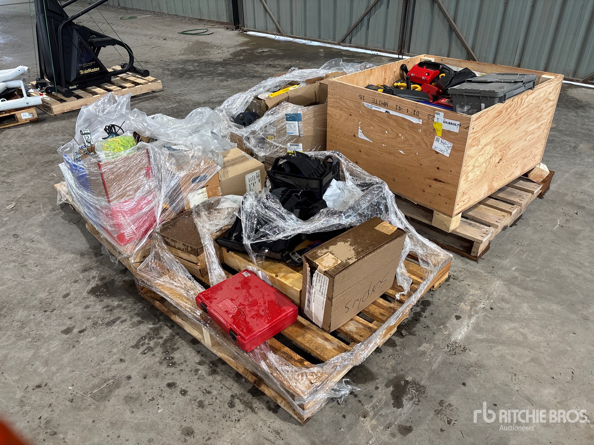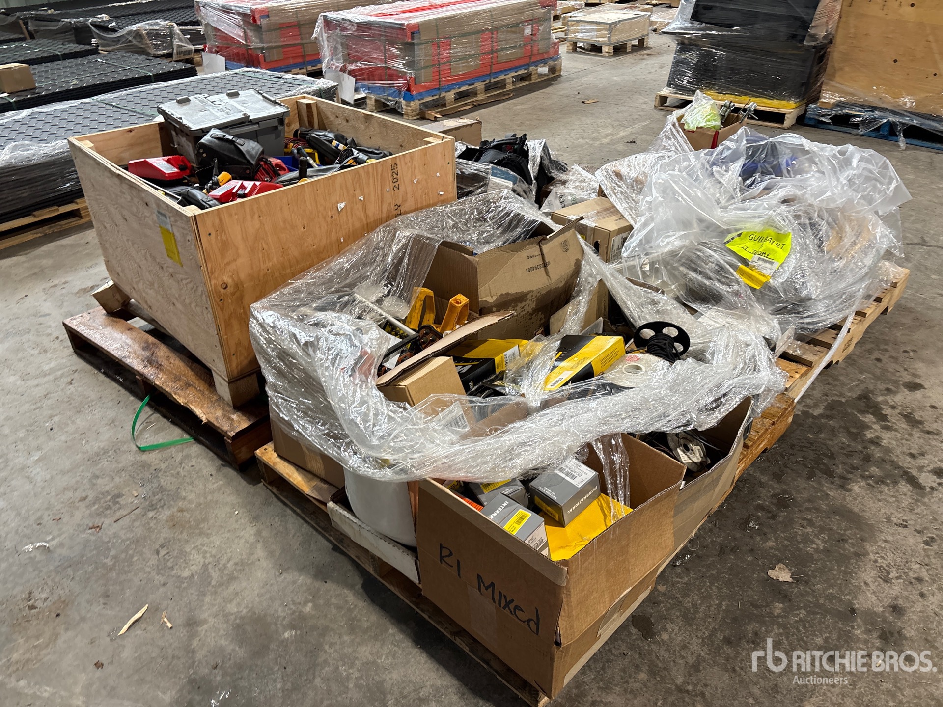 electrical testing equipment, cordless drills, chargers, hand tools, laser level, wiring supplies, and accessories.