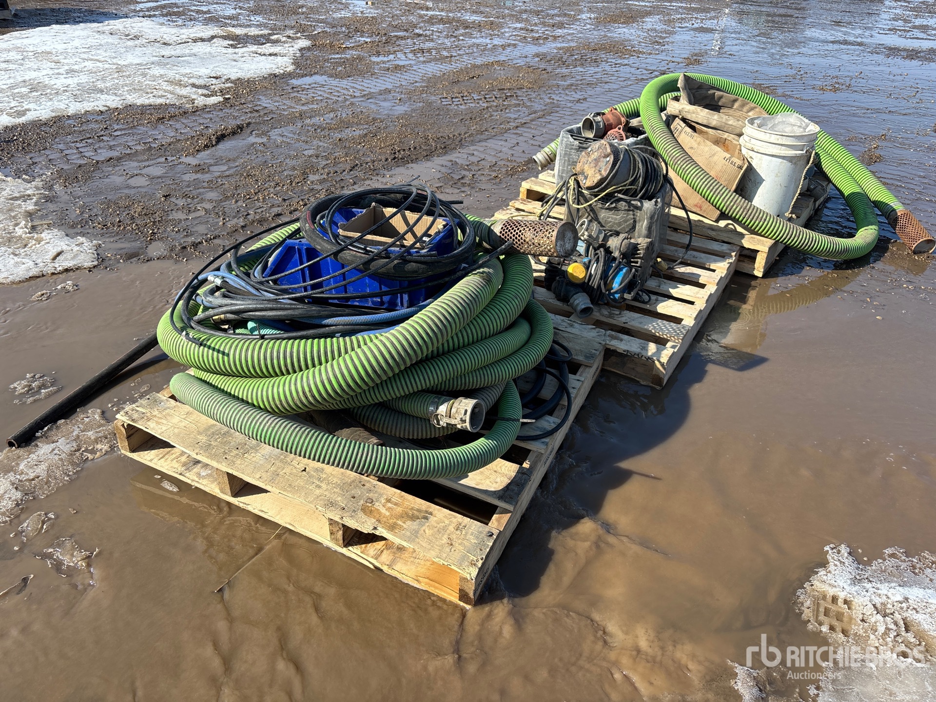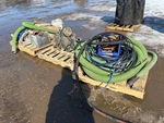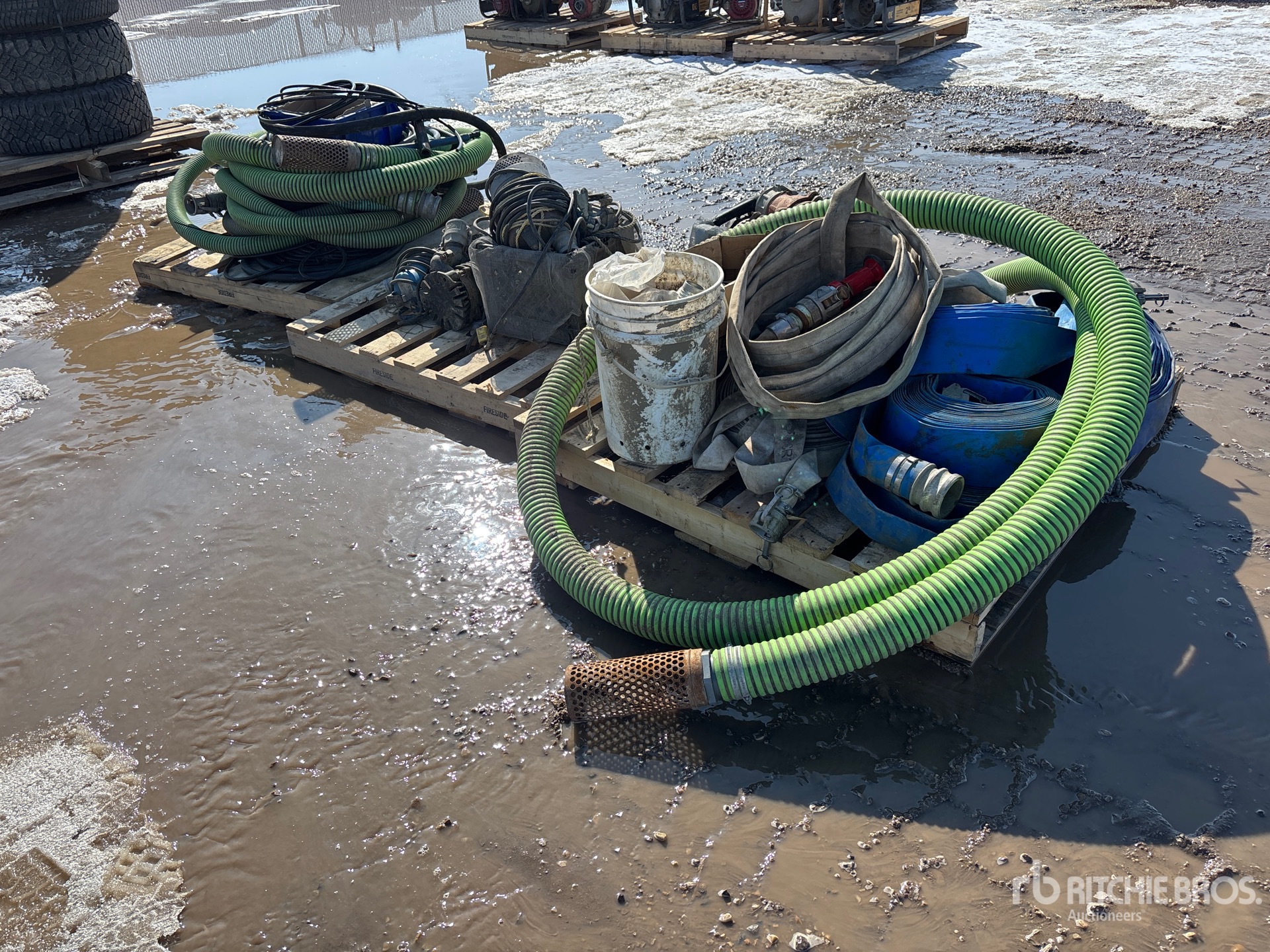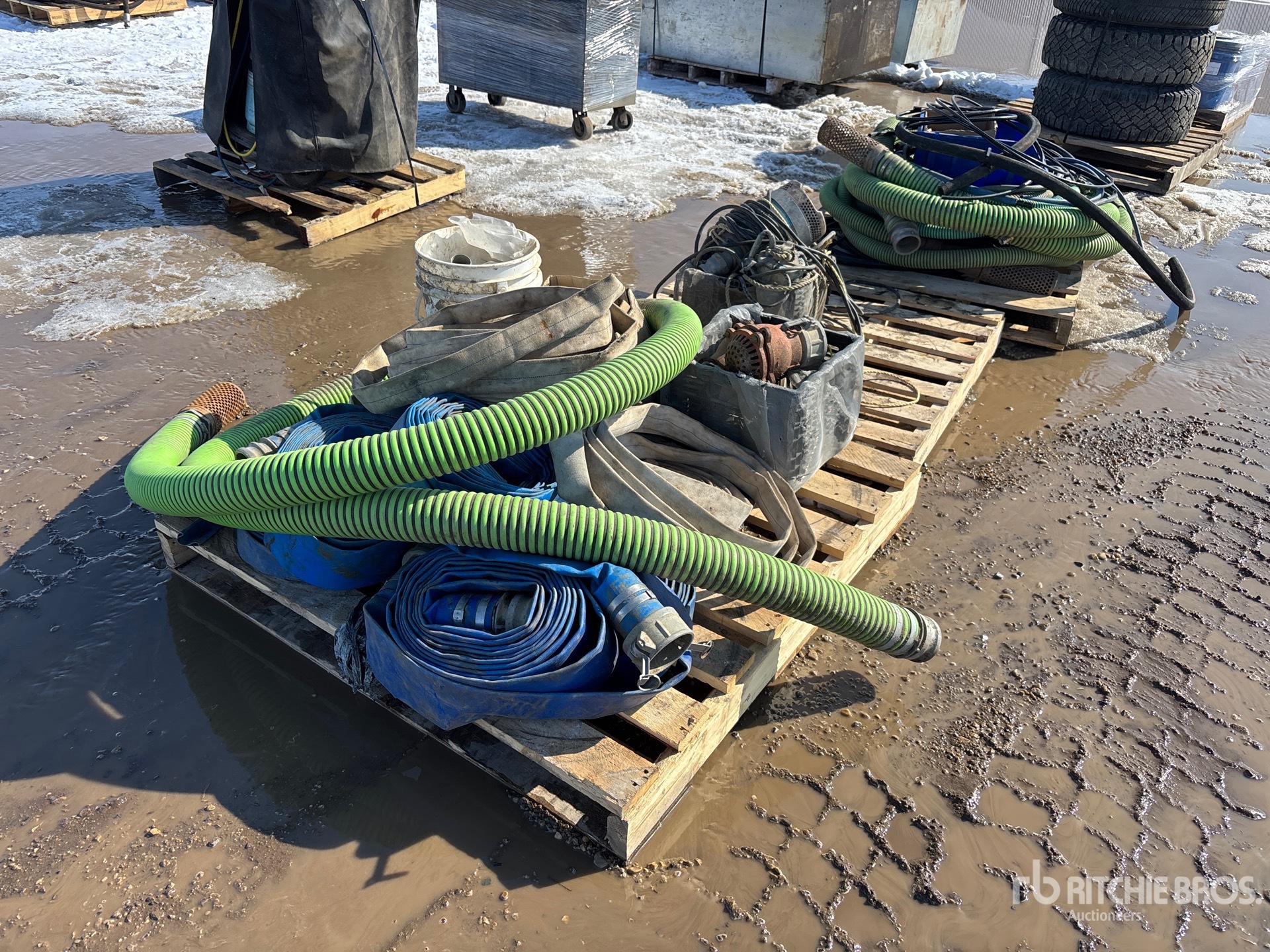 (3) Pallets, Lay Flat Hose, Fire Hose, Suction Hose, Hydraulic Hose, Fittings, Pumps