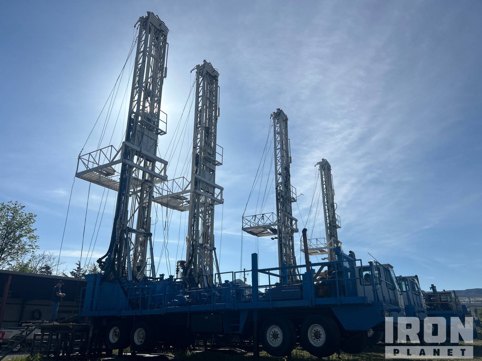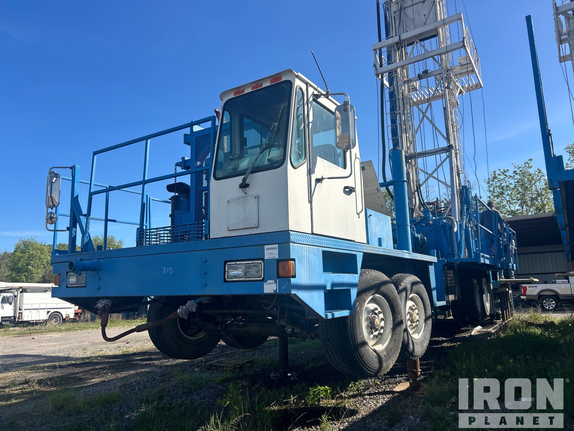 PTO Driven, Rotary Air Drill, Mud Drill, Straight Down Outriggers, Caterpillar C15 6 Cylinder 14.6 L Diesel Engine, 2003 US EPA Label, Eaton Fuller 18-Speed Manual Transmission, Differential Lock, 445/65R22.5 Front Tires, 12R22.5 Rear Tires, Dual Steering Boxes, Double Frame, Walking Beam Suspension, 306 in Wheelbase
