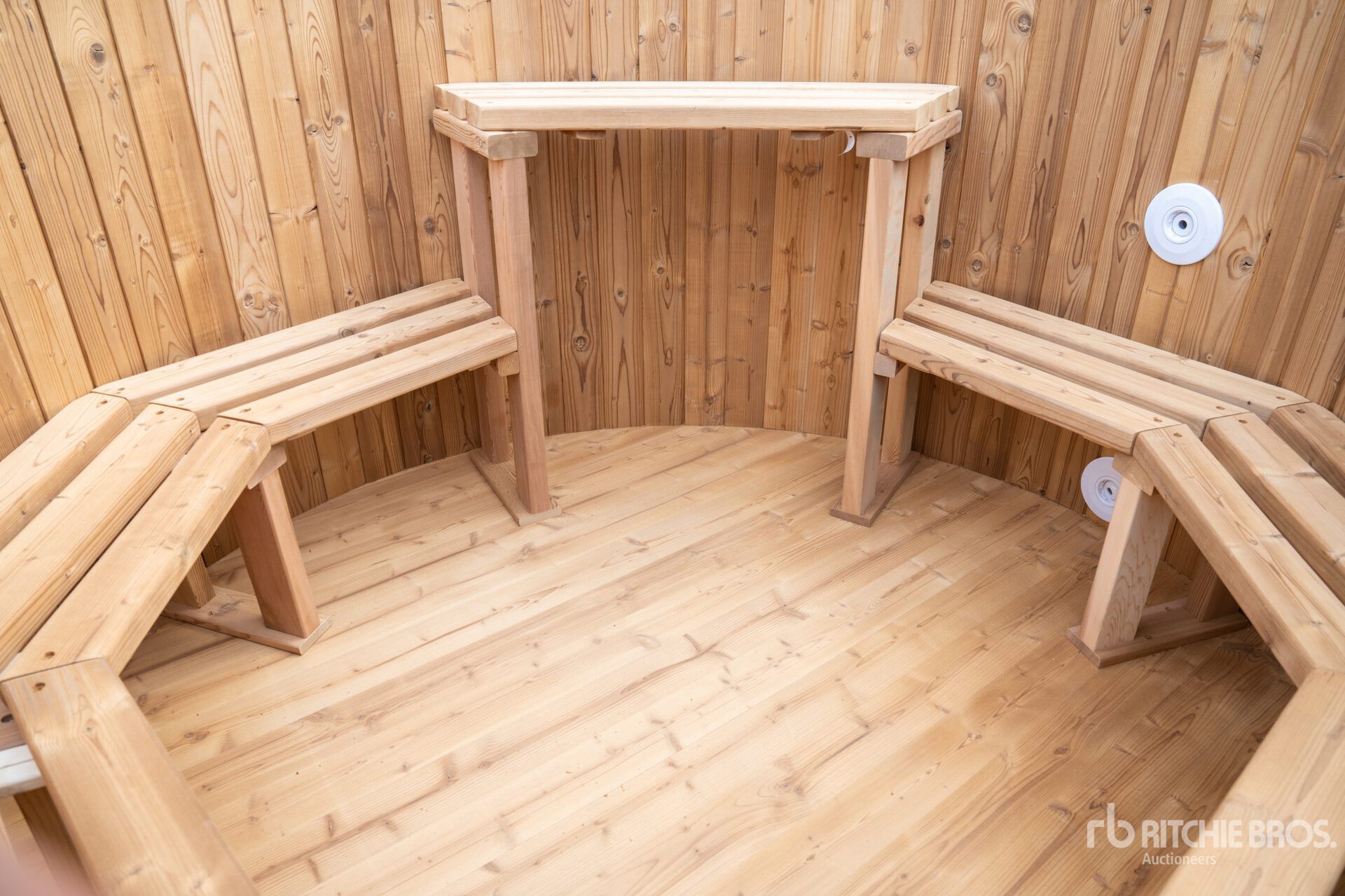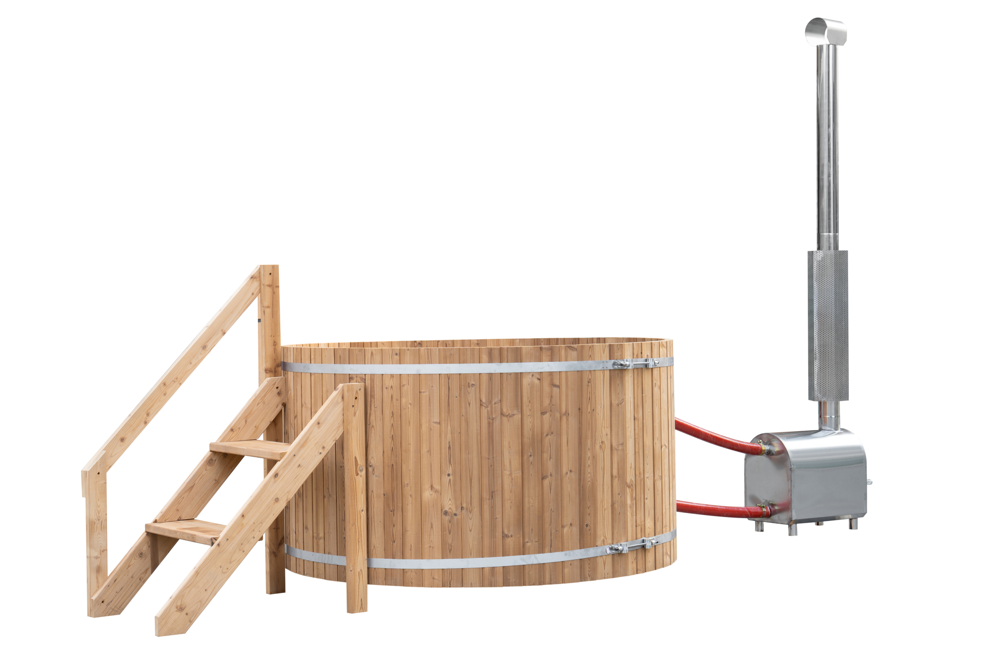 Insulated Cover, (2) Stainless Steel Bands, Inside Seat, Stairs, Stainless Steel Stove, (6-8 Person Capacity)